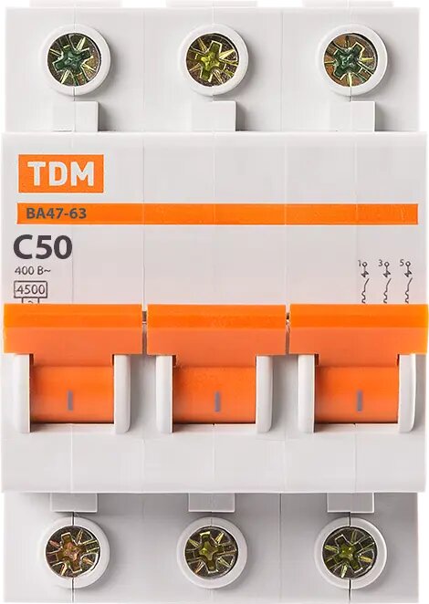 Автоматический выключатель TDM Electric ВА47-63 3P 50А (C) 4.5кА, SQ0218-0024 699 ₽
