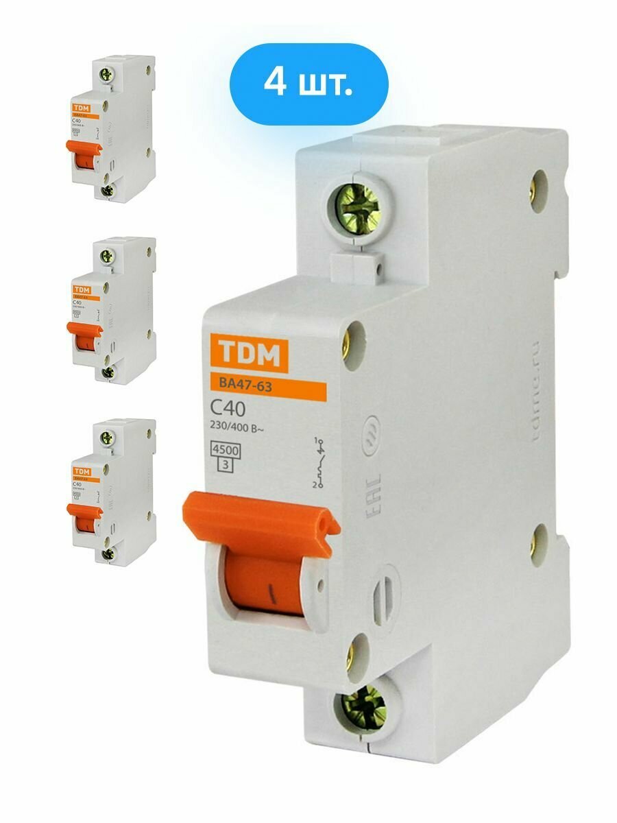 Автоматический выключатель TDM ВА47-63 1P 40А характеристика C (комплект из 4 шт) информация: