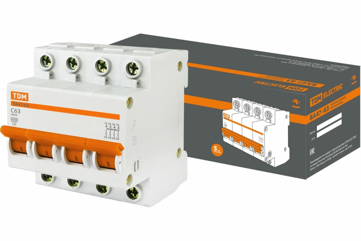 Автоматический выключатель TDM ВА47-63 1P 63А характеристика C (комплект из 4 шт)