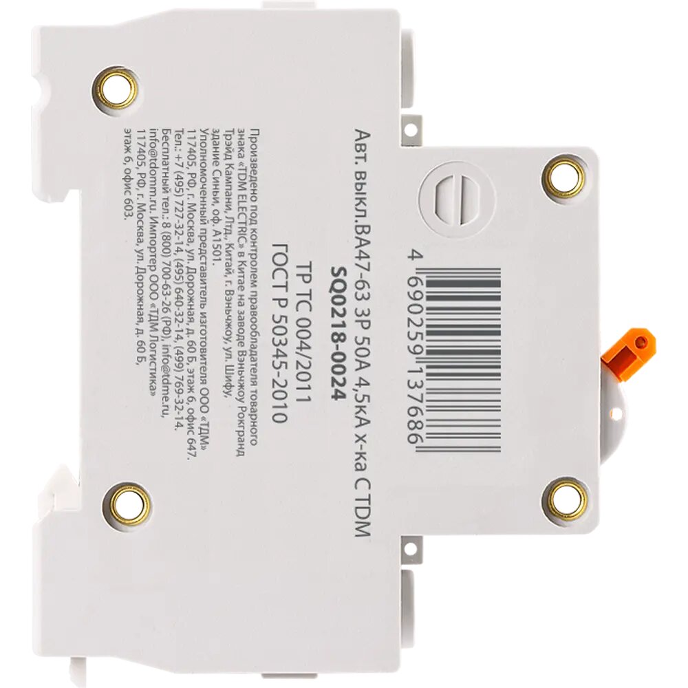Автоматический выключатель TDM Electric ВА47-63 3P C50 А 4.5 кА SQ0218-0024 информация:
