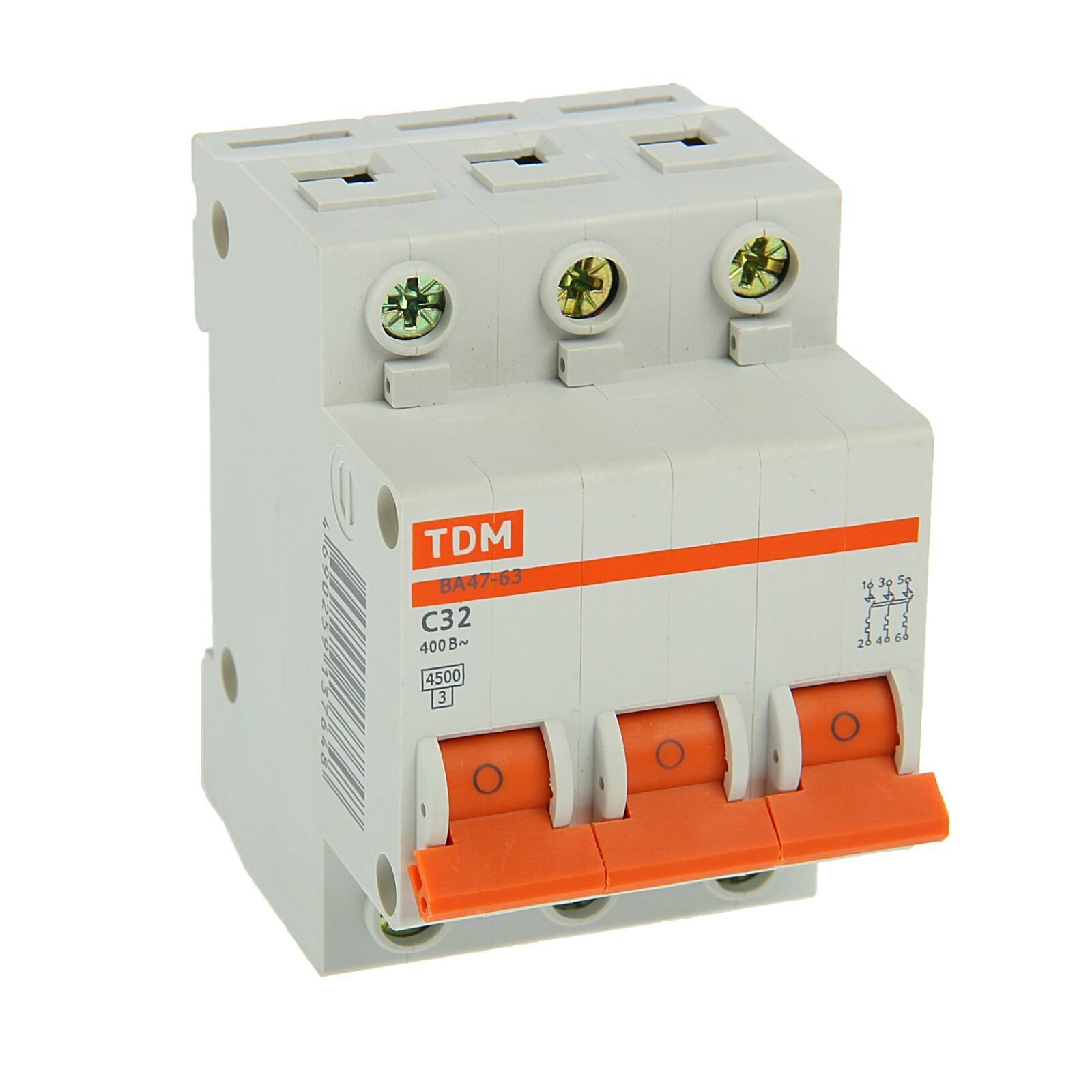 10 цен на Выключатель автоматический Tdm Electric ВА47-63, 3Р, 32 А, 4,5 кА, тип C