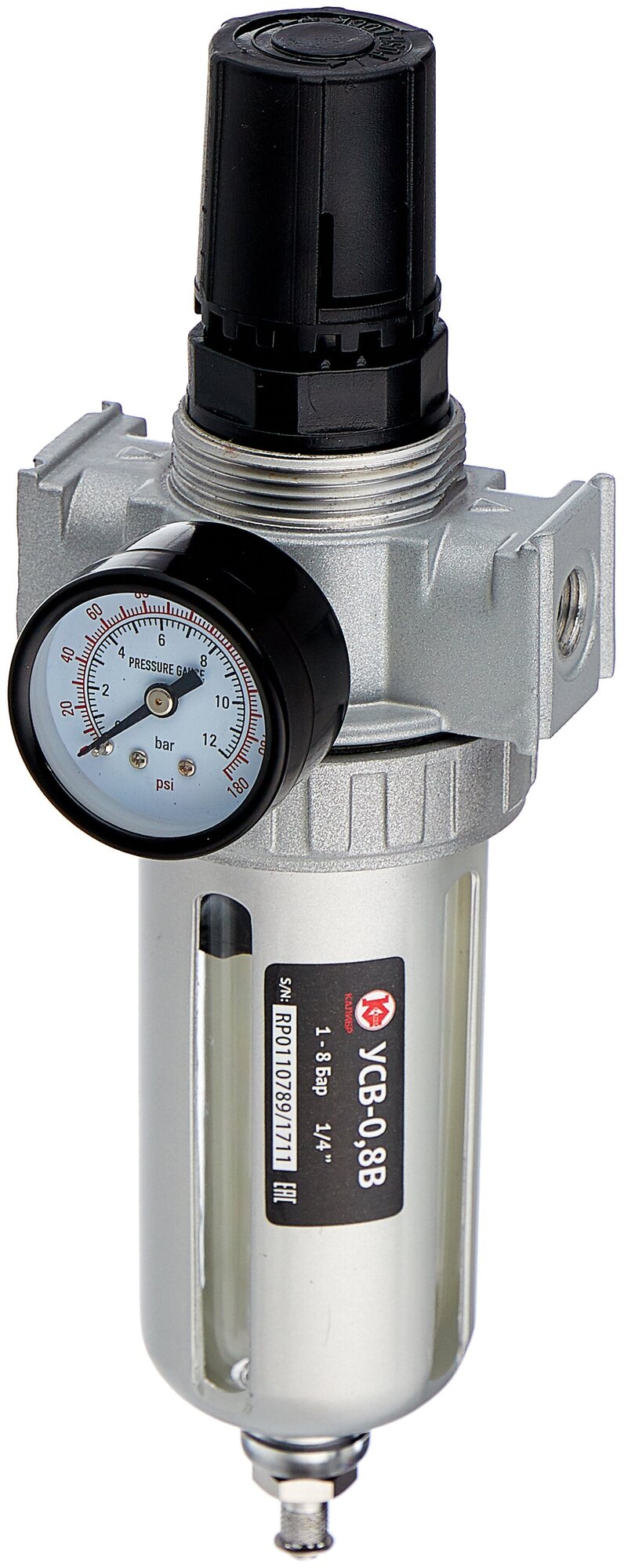Фильтр-регулятор с индикатором давления для пневмосистем 1/4"(10Мк, 2000 л/мин, 0-10bar, раб. температура 5-60)