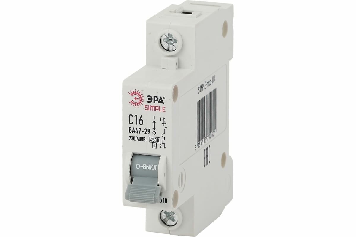 Отзывы на Выключатель автоматический модульный 1п C 16А 4.5кА ВА 47-29 SIMPLE-mod-03 ЭРА Б0039220