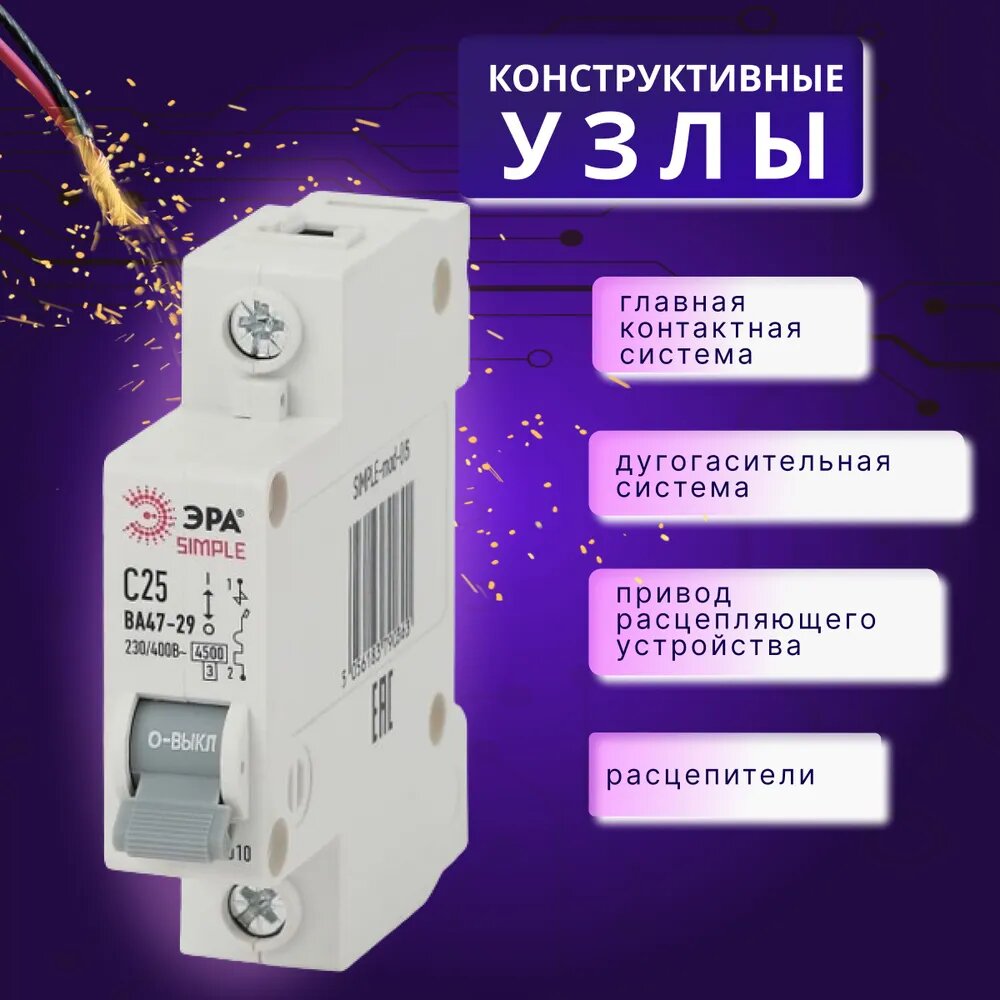 Автомат Б0039222 ЭРА SIMPLE-mod-05 1P 25А C выключатель ВА 47-29 4шт информация: