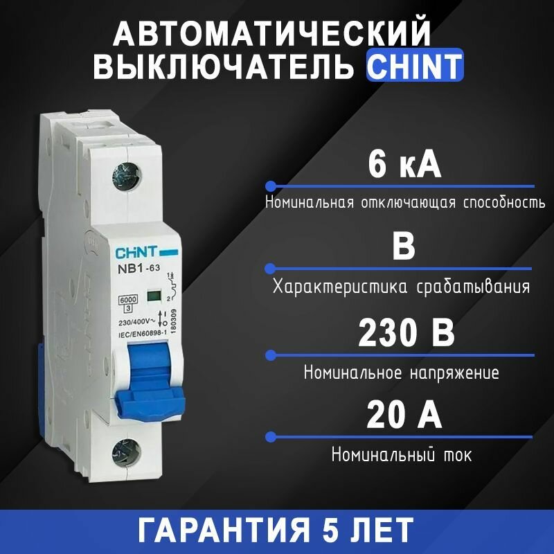 CHINT Авт. выкл. NB1-63 1P 20A 6кА х-ка B (R) информация: