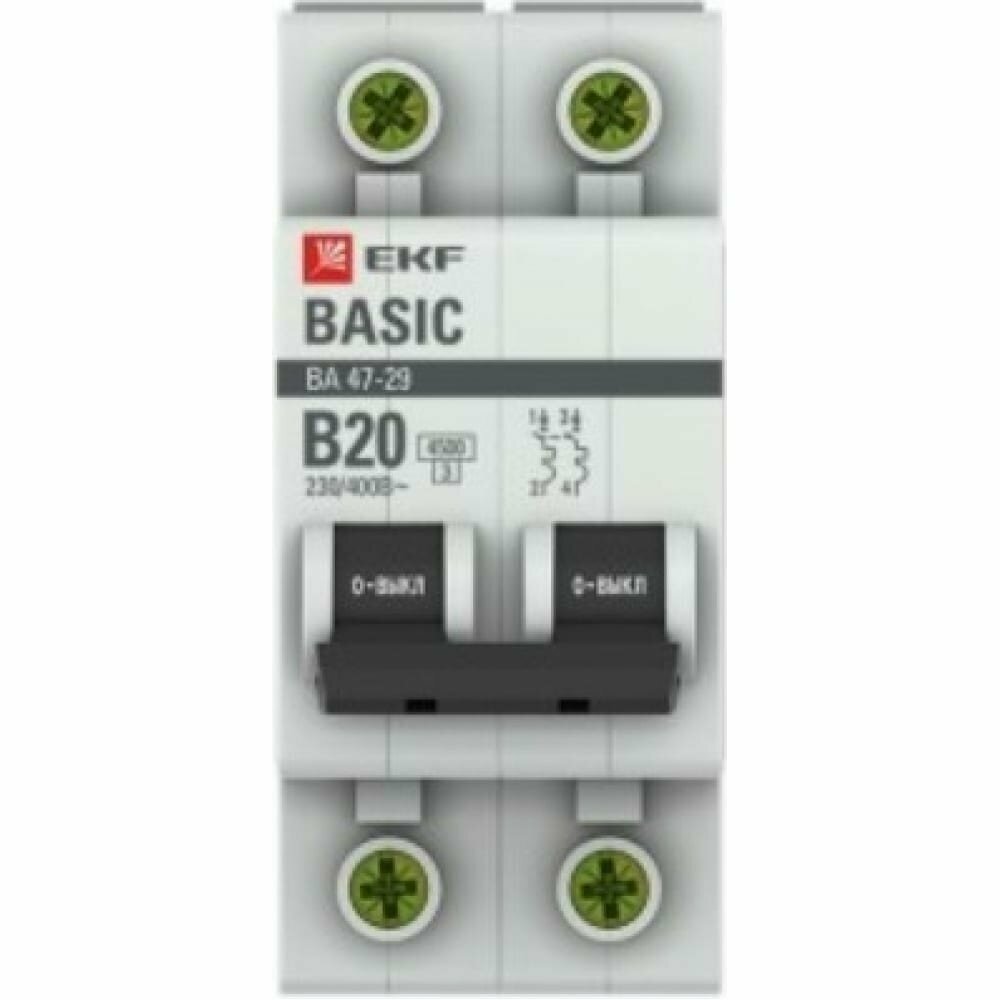 Автоматический выключатель EKF Basic ВА 47-29 2P 20А тип В 4,5 кА 660 В на DIN-рейку (mcb4729-2-20-B) информация: