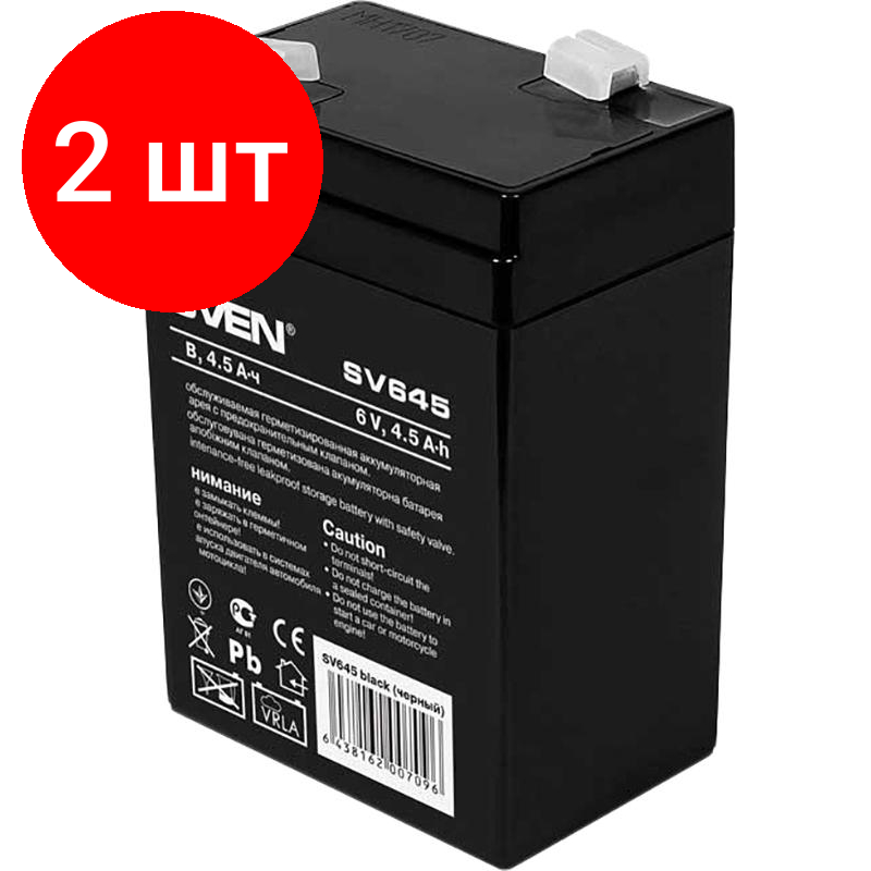 10 цен на Комплект 2 штук, Батарея для ИБП Sven SV 645 (6V 4.5Ah) F1 (SV-0222064)