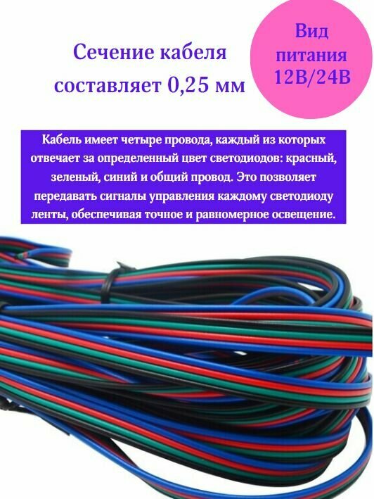 Кабель для светодиодной ленты RGB 4-жильный 10 м IP33 DC 12 - 24 В информация: