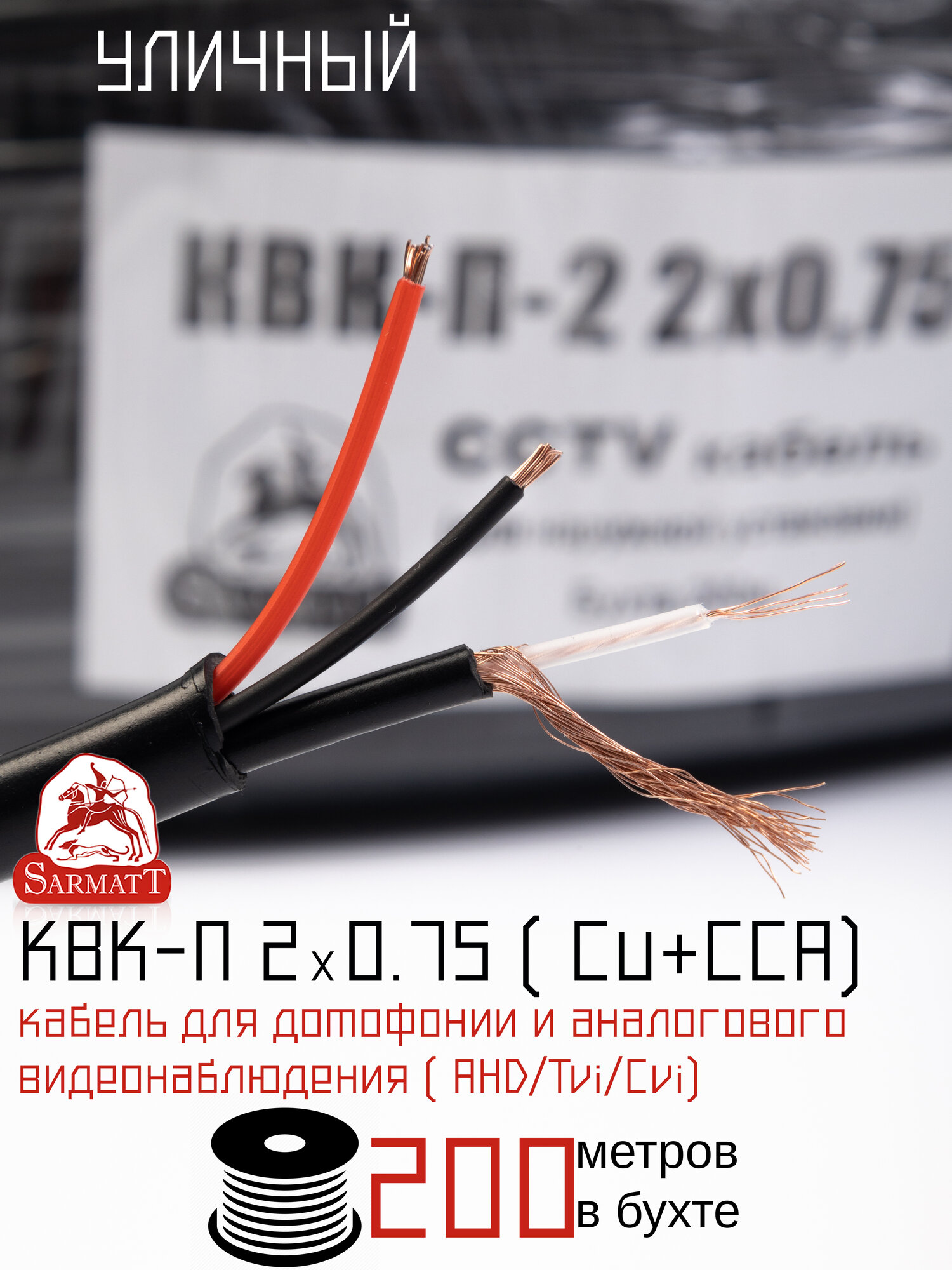 Кабель комбинированный для систем видеонаблюдения КВК-П-2 2Х0,75 для уличной прокладки (бухта 200м) информация: