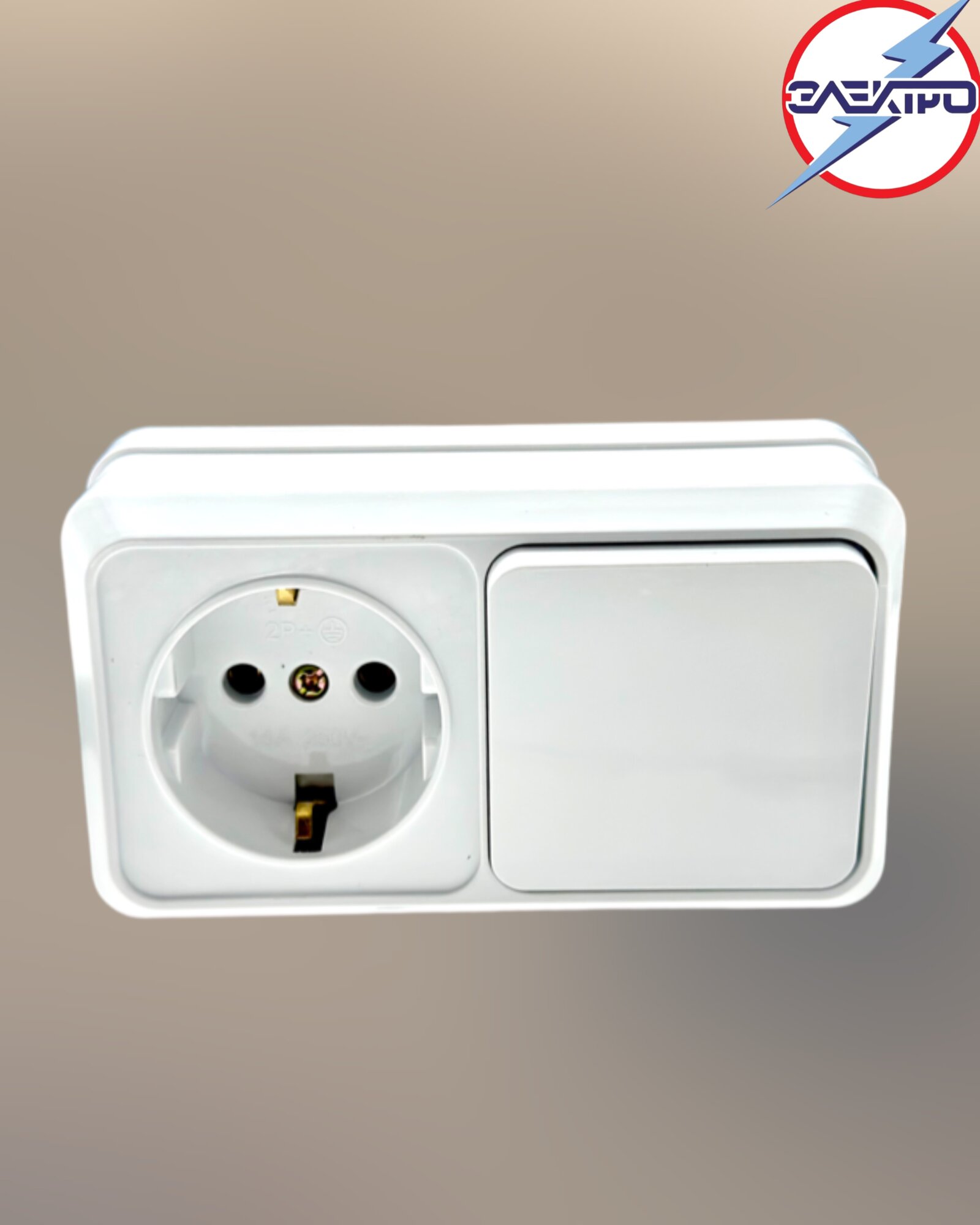 Блок розетка с заземлением + выключатель 1 клавиша белый информация: