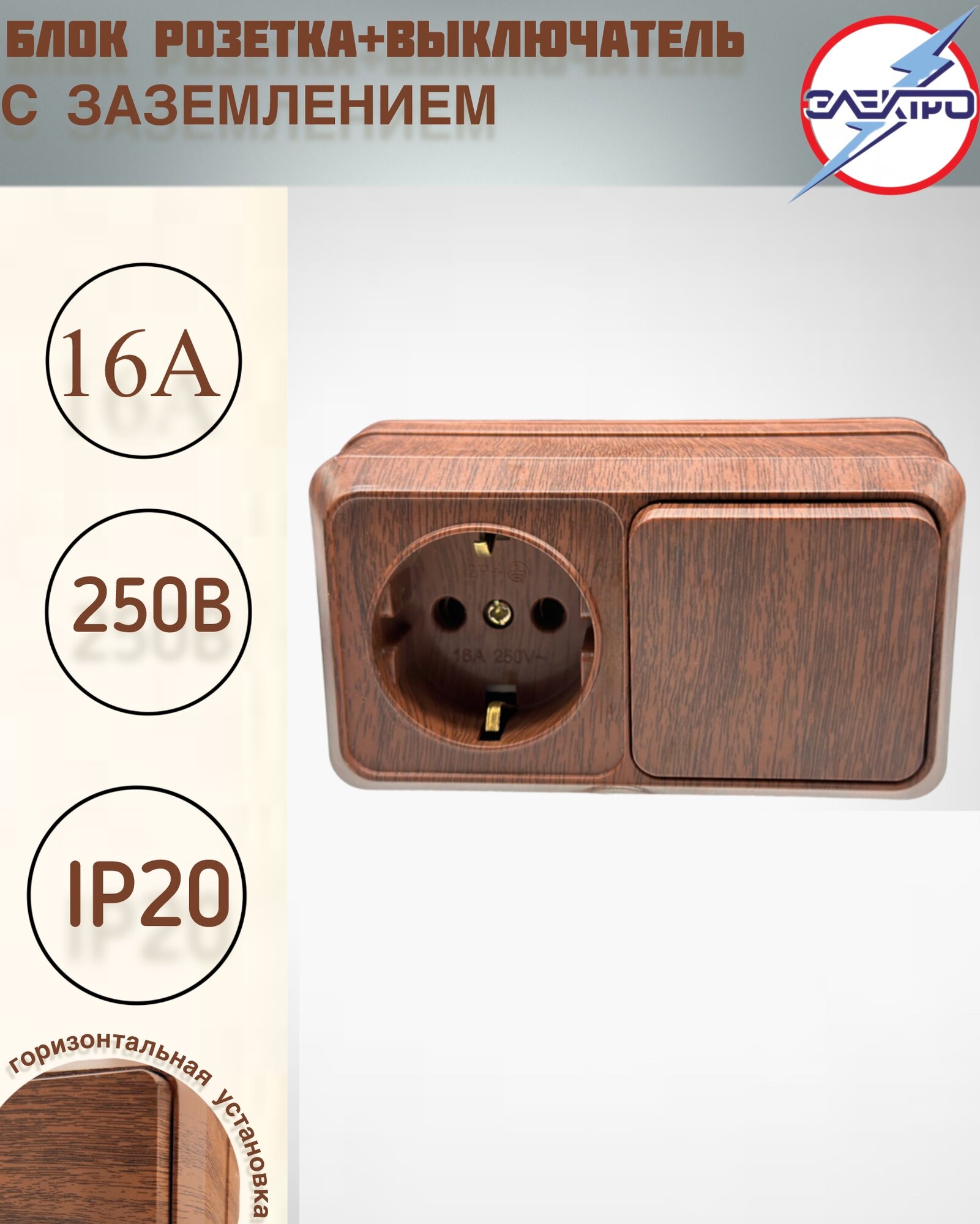 10 цен на Блок розетка с заземлением + выключатель 1 клавиша, бук