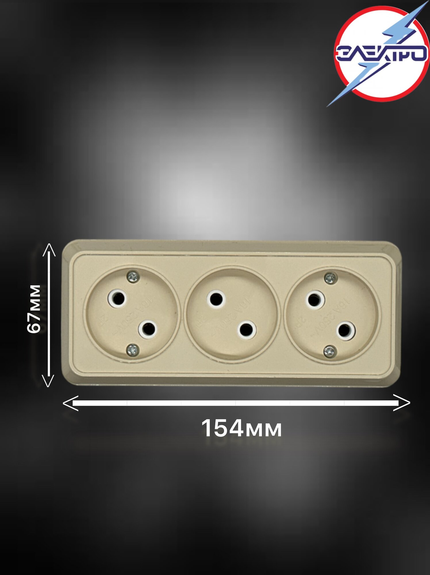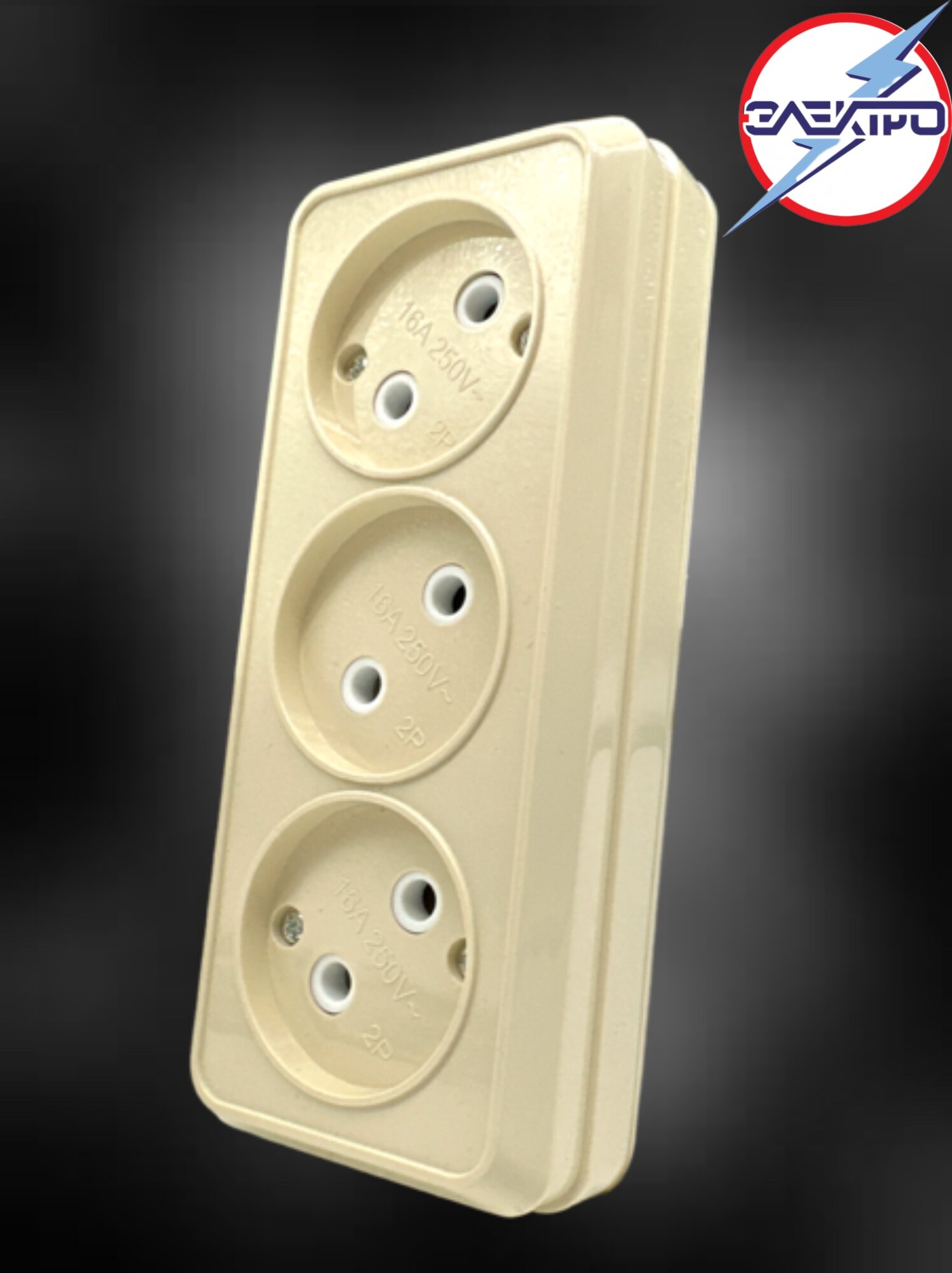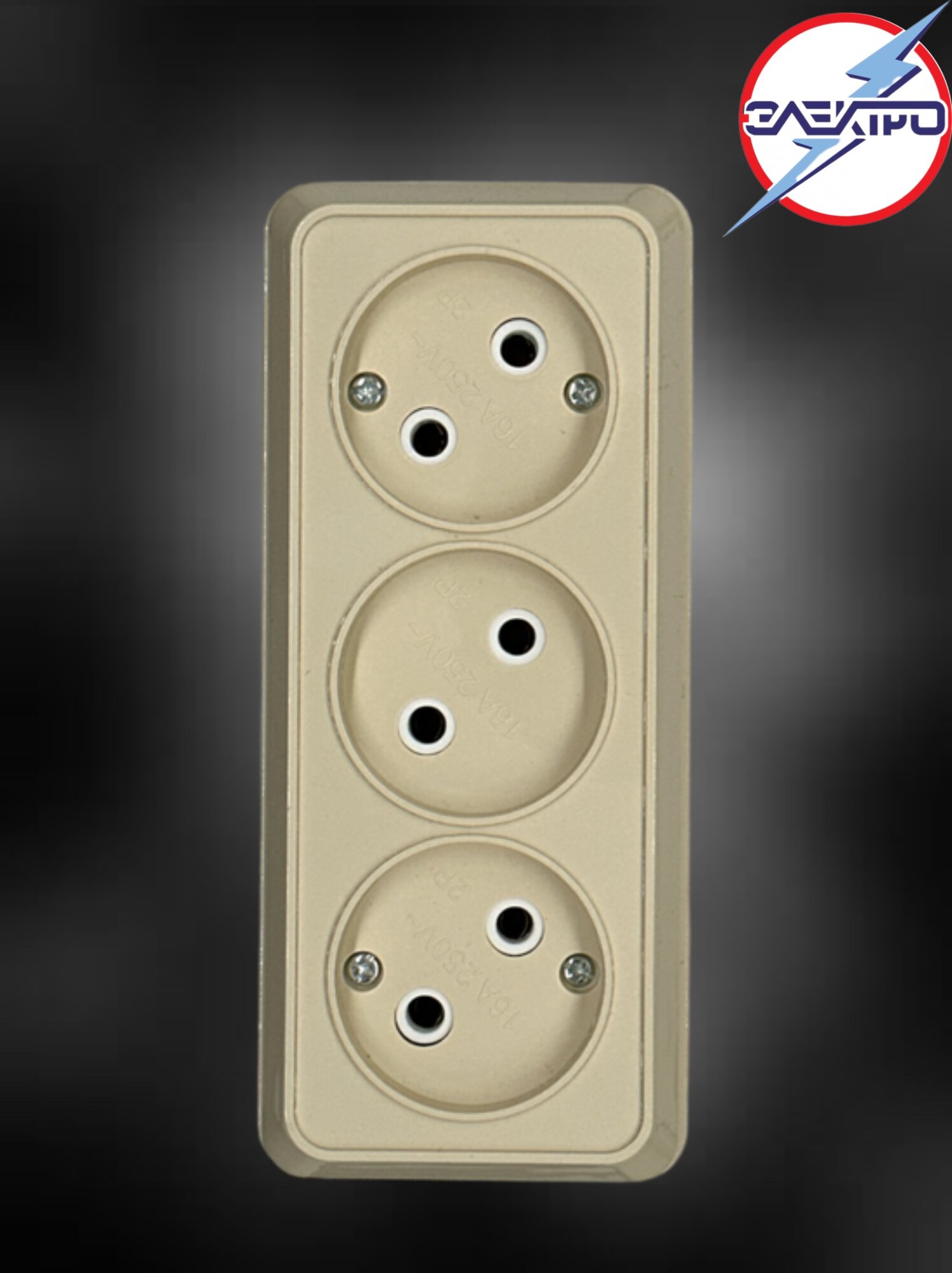 Розетка накладная тройная без заземления, цвет бежевый информация:
