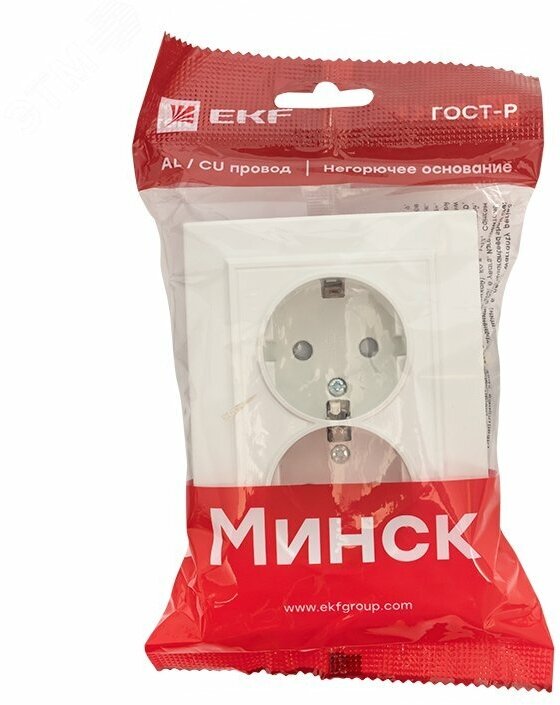Розетка двухместная минск, скрытый монтаж, с заземлением, со шторками, белый. ERR16-128-100 EKF (10шт.) информация: