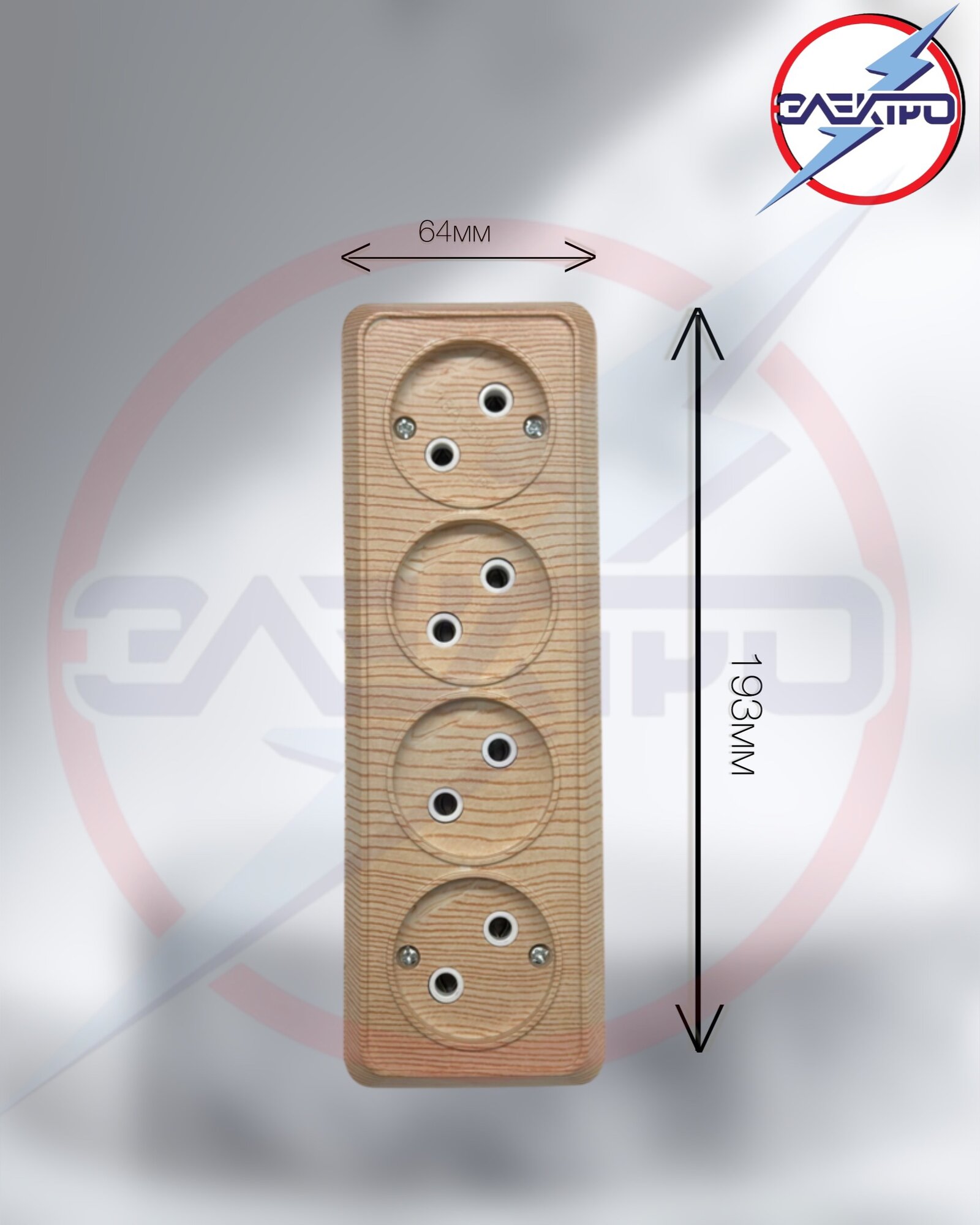 Розетка четырехместная накладная без заземления, цвет сосна информация: