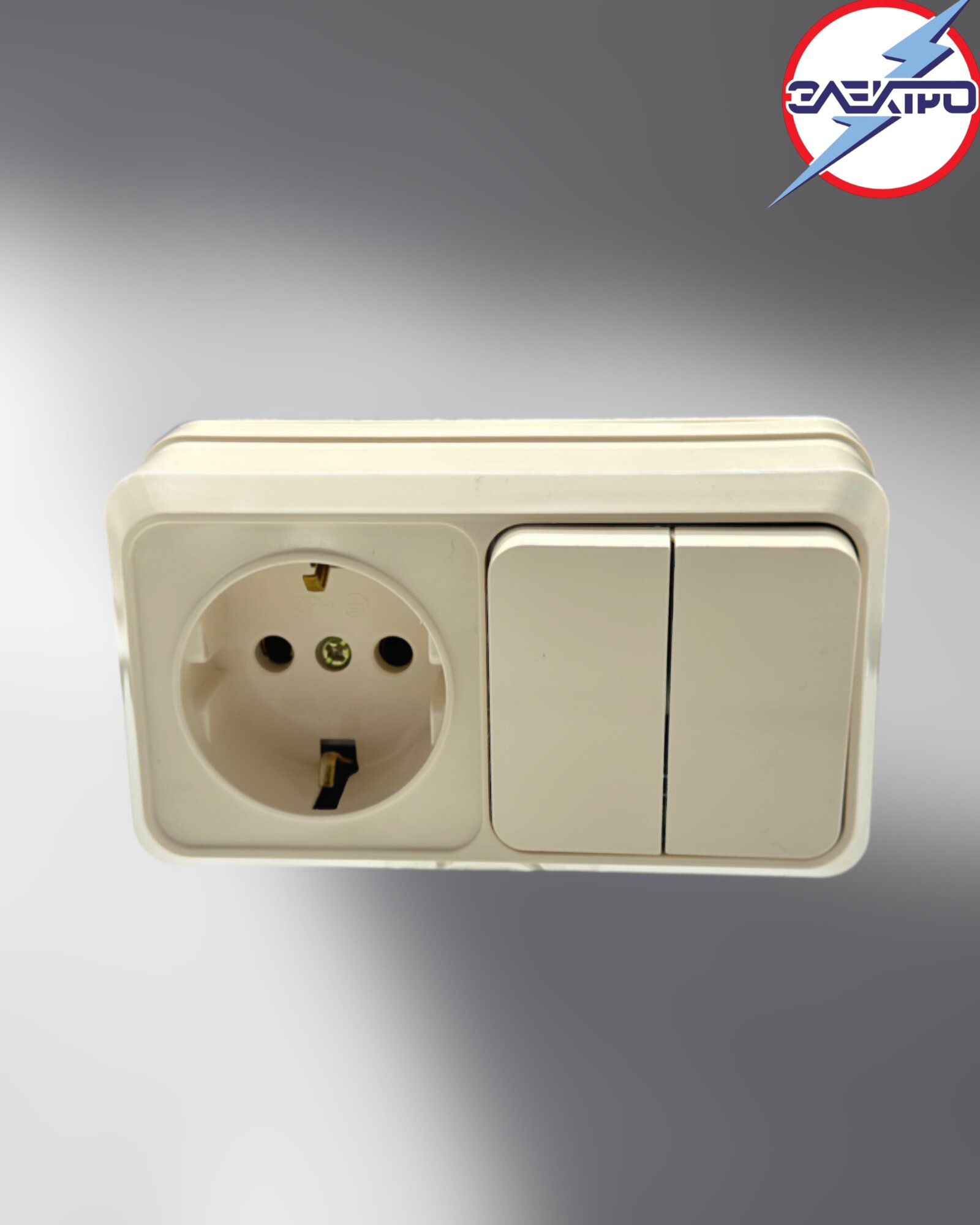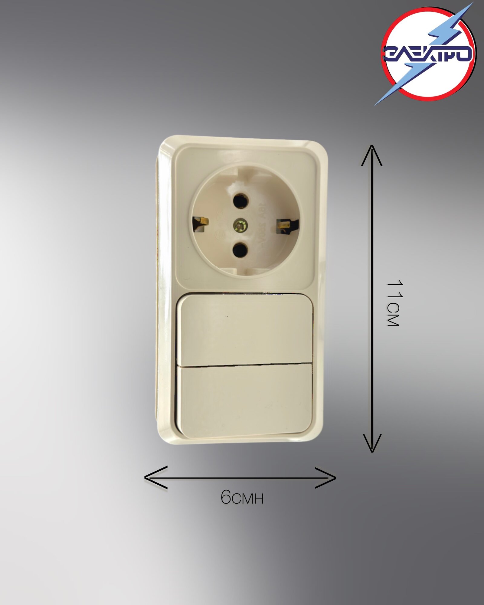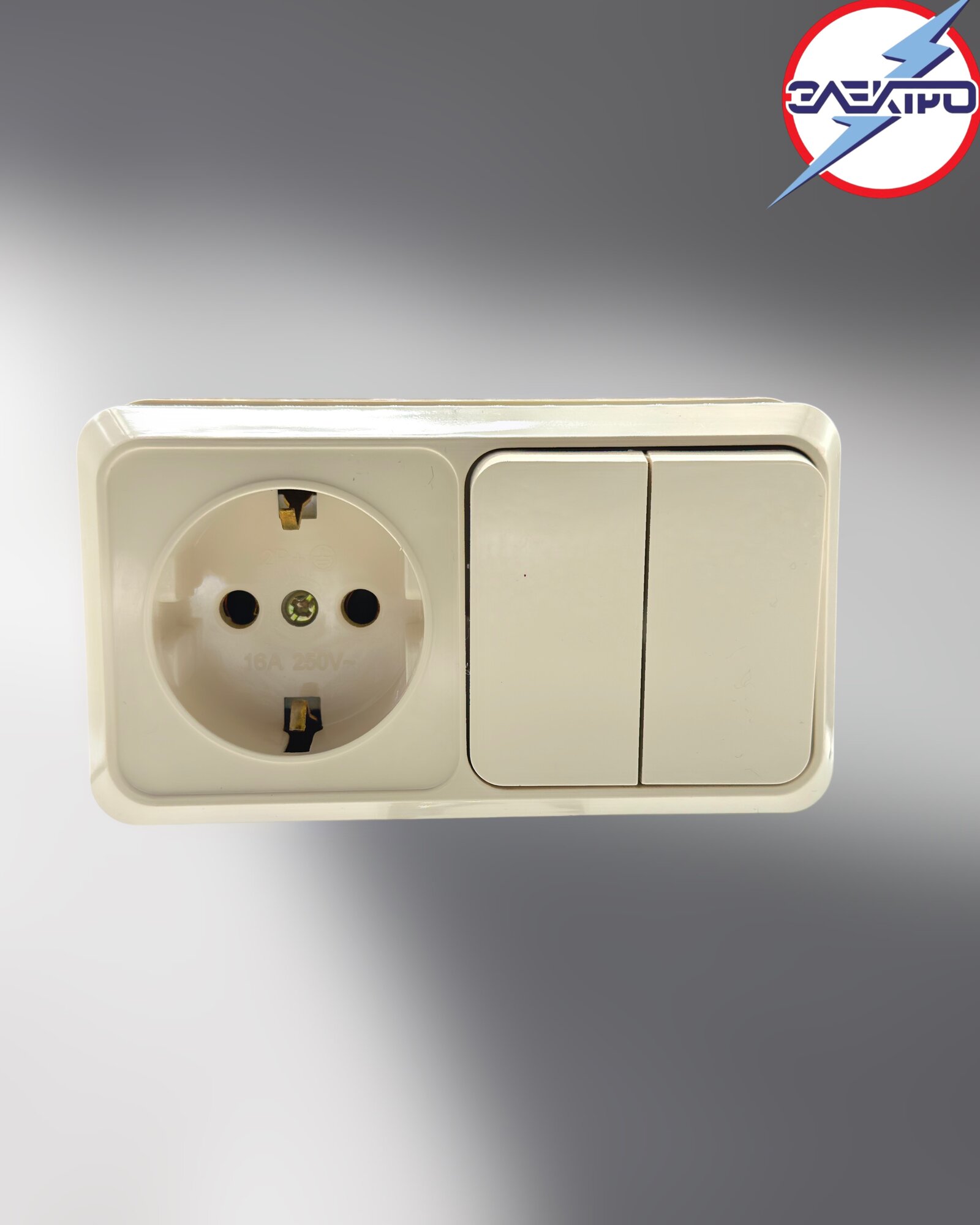 Блок розетка с заземлением + выключатель 2 клавиши бежевый информация: