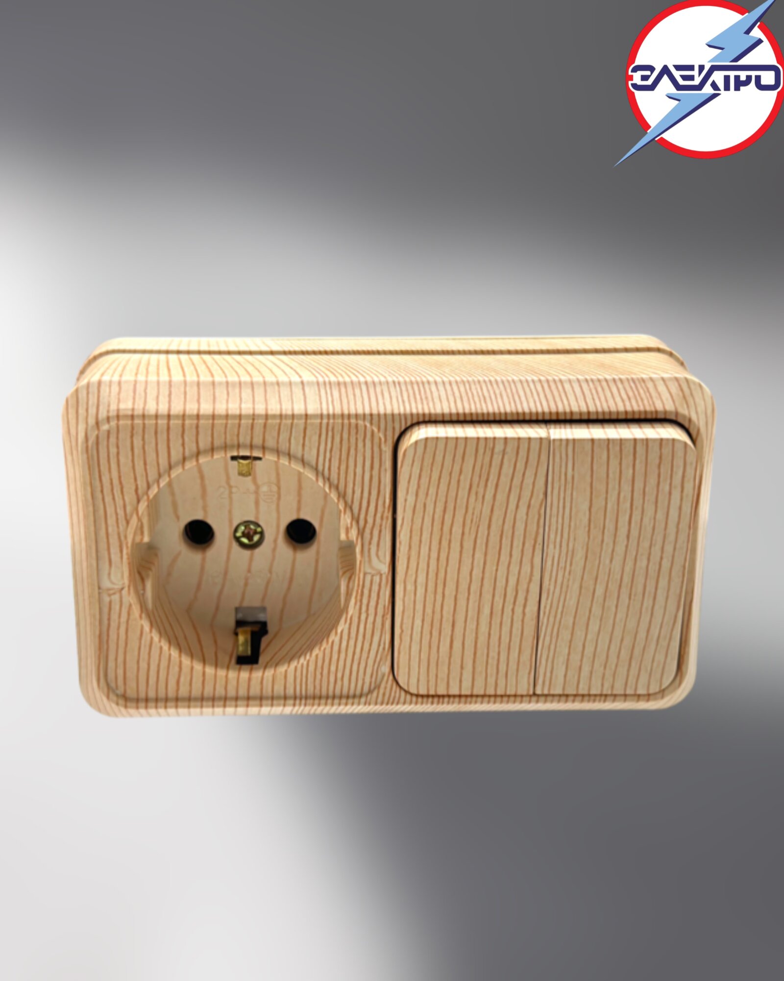 Блок розетка с заземлением + выключатель 2 клавиши сосна информация: