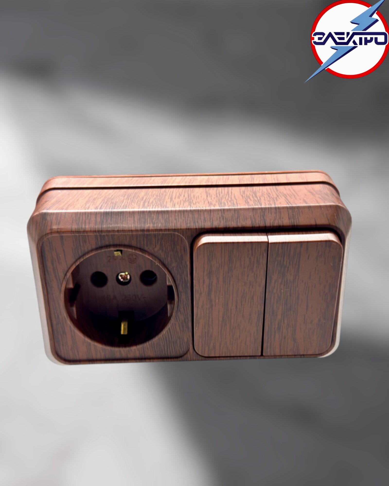 Блок розетка с заземлением + выключатель 2 клавиши, цвет бук информация:
