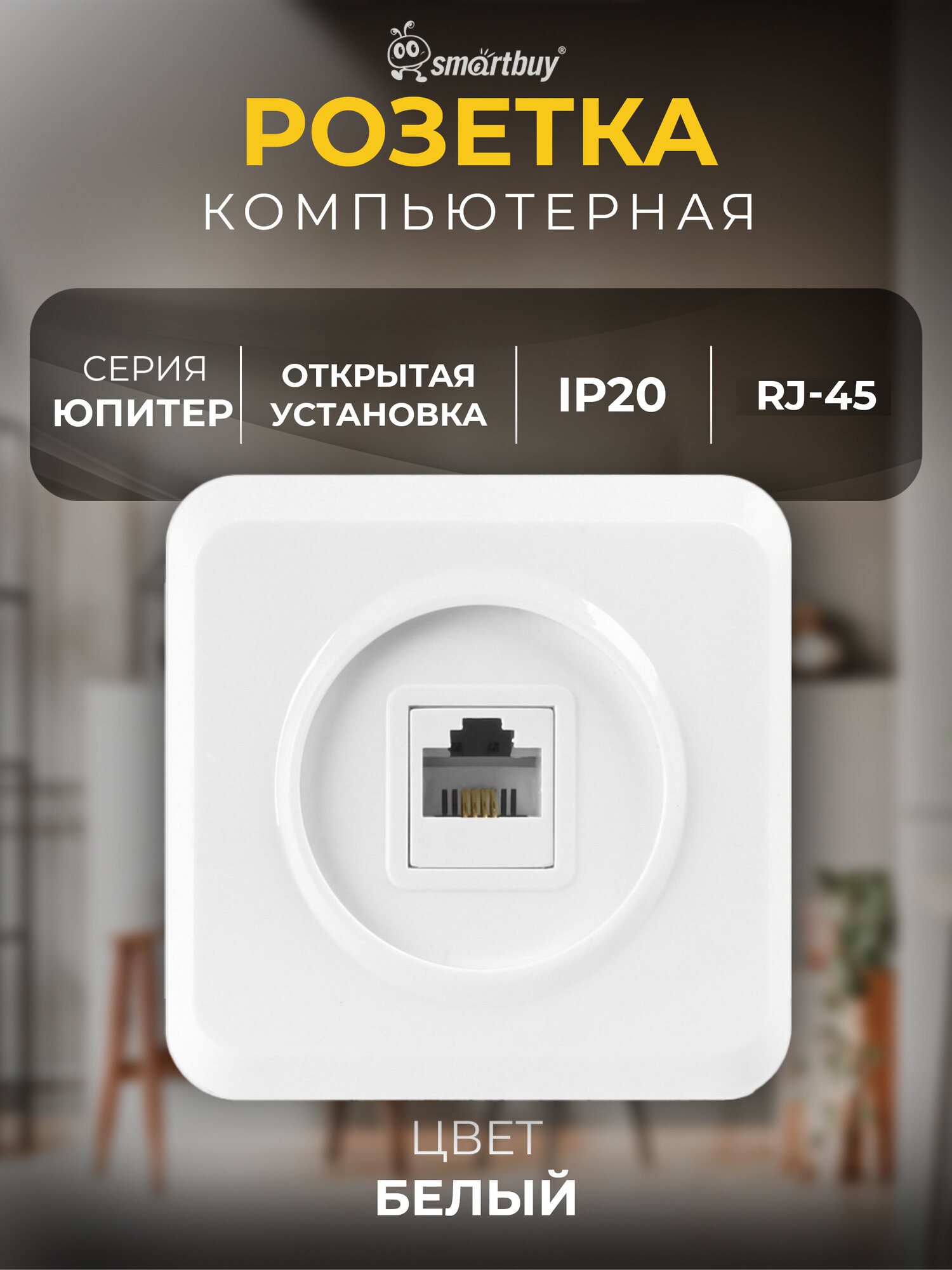 Розетка компьютерная RJ-45 1-местная белая "Юпитер", SmartBuy информация: