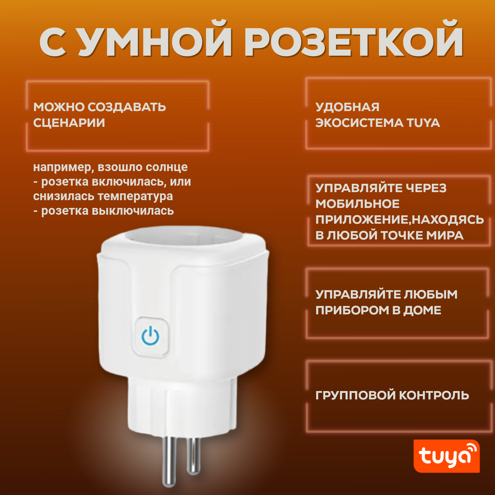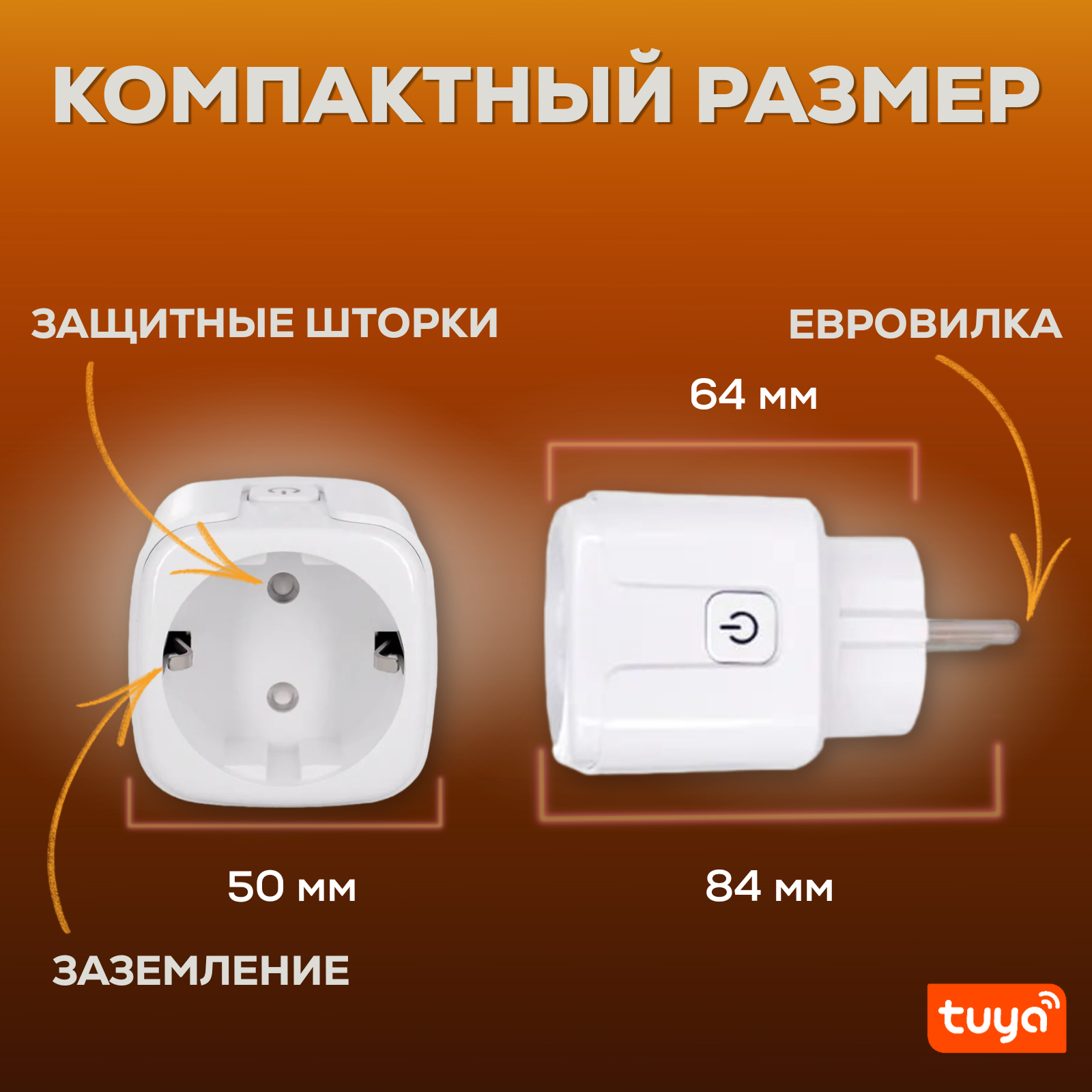 Умная розетка с Яндекс Алисой Tuya WiFi 16А с голосовым управлением мониторингом подключение Bluetooth и WiFi