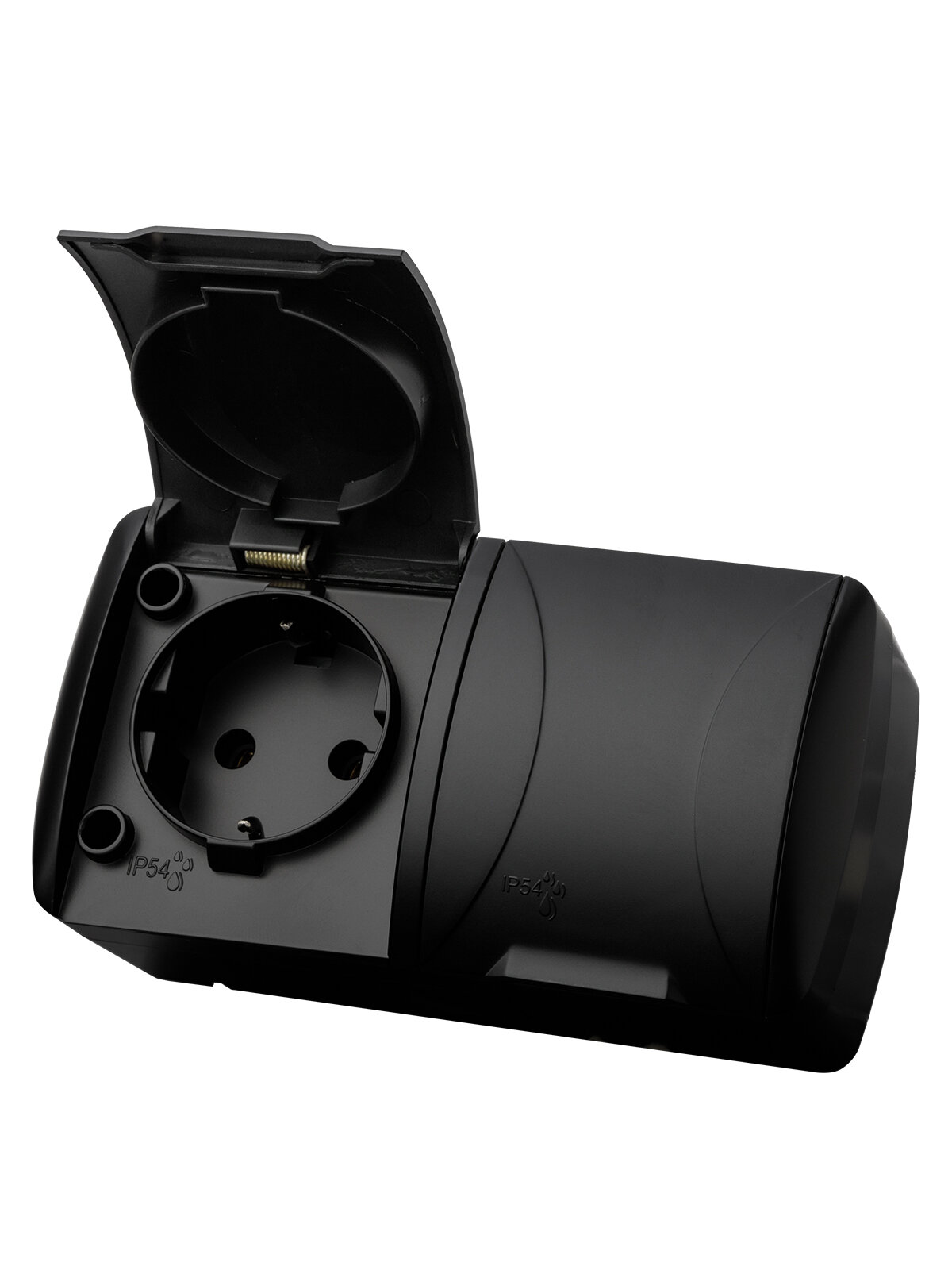 Розетка двойная 2П+3 открытой установки IP54 16А с крышкой графит "Селигер" TDM информация: