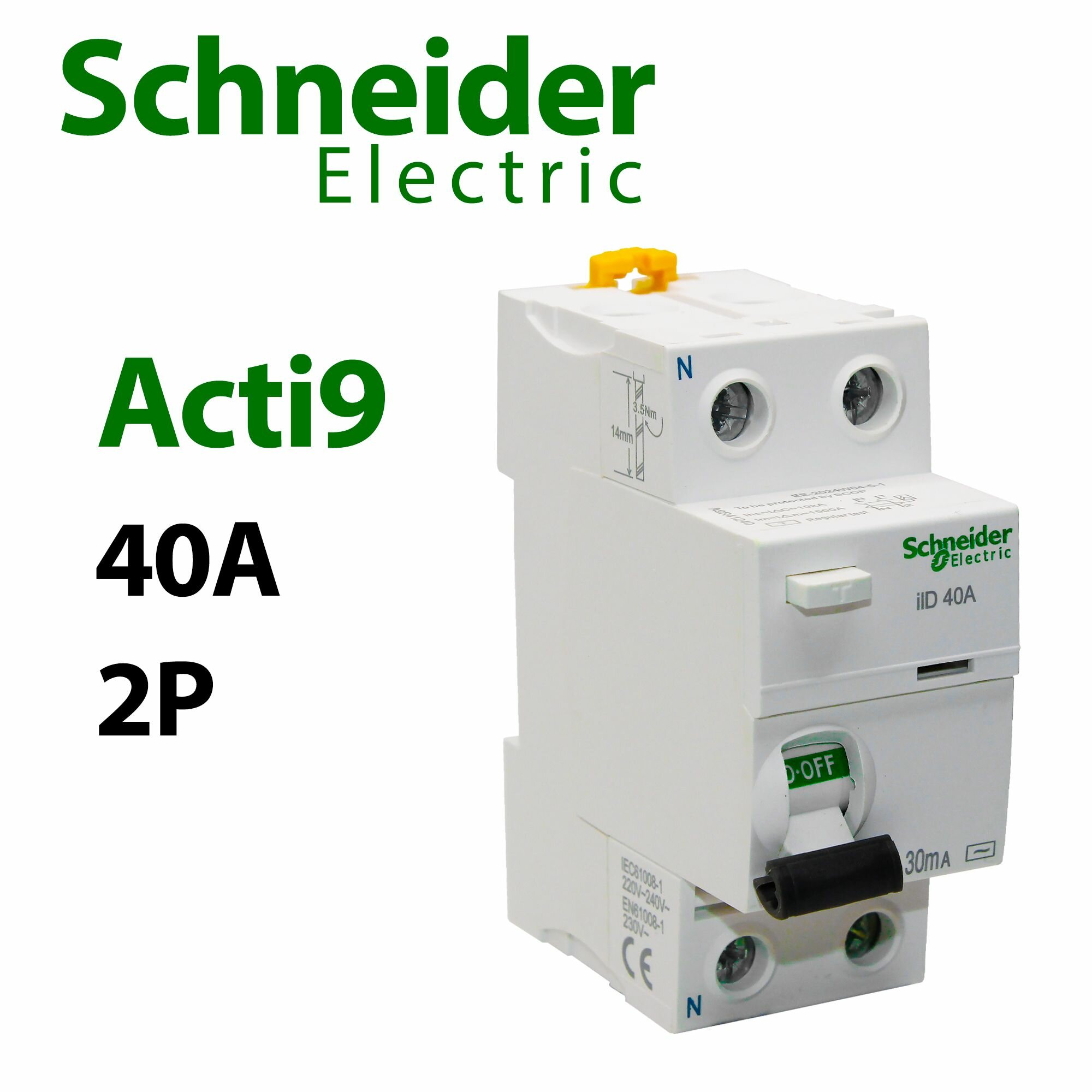 Устройство защитного отключения УЗО 40А Schneider Electric Acti9 информация: