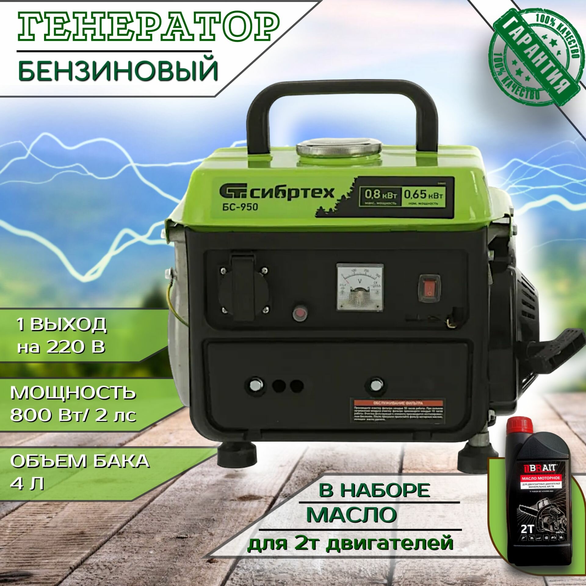 Генератор бензиновый БС950 / бензогенератор / мини генератор для охоты, рыбалки, туризма + масло для двухтактных двигателей информация: