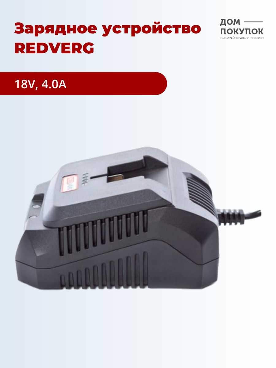 | Дополнительная информация | Зарядное устройство RedVerg 18V 4,0А (730002) для аккумуляторов: Аккумулятор RedVerg Li-Ion 18V 4.0Ач (730021) Аккумулятор RedVerg Li-Ion 18V 5.0Ач (730031) |