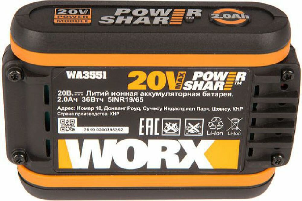 Аккумулятор Worx WA3551.1 20 В 2 Ач информация: