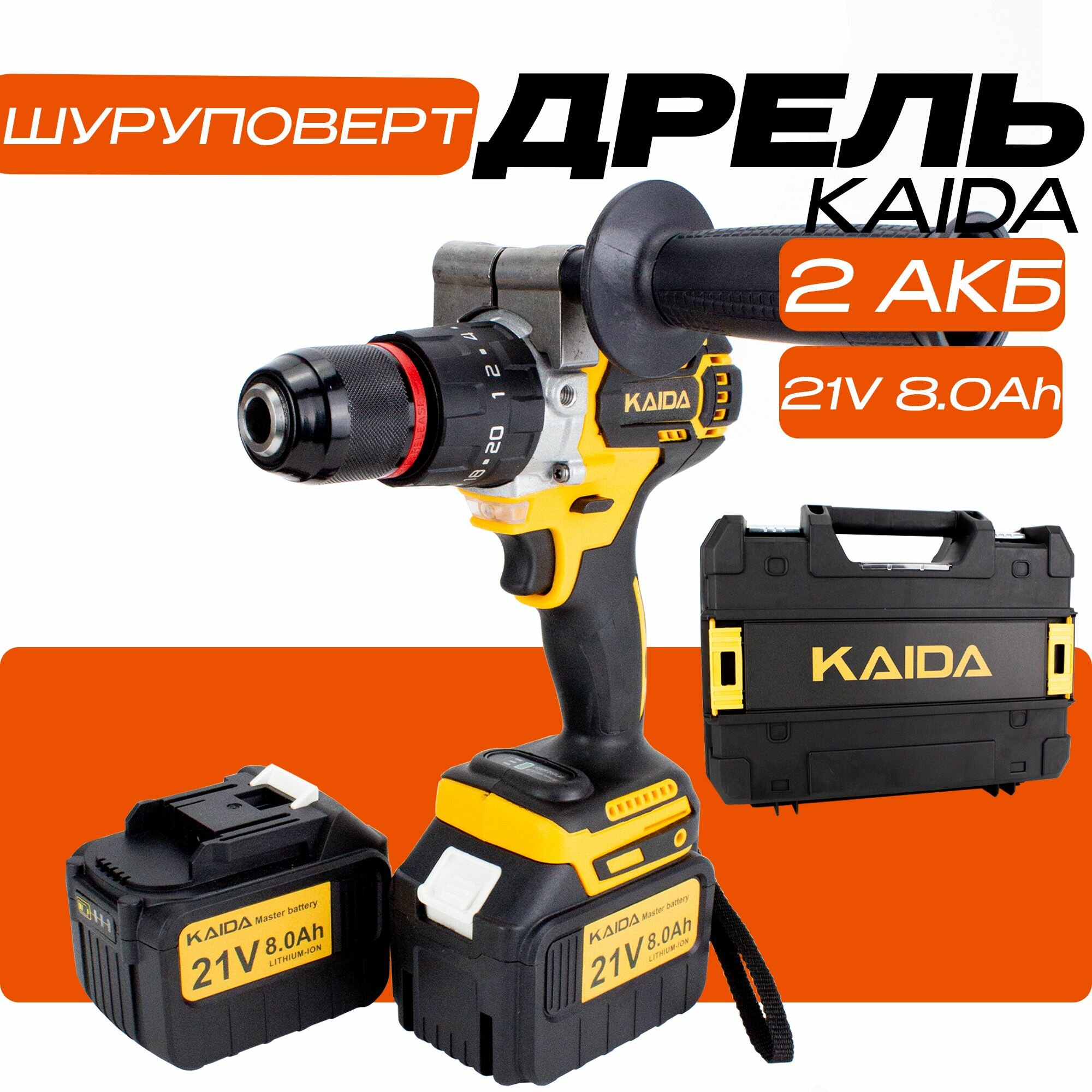 Дрель-шуруповерт Kaida 21V8.0Ah по дереву, металлу, бетону, для бурения льда шнеком