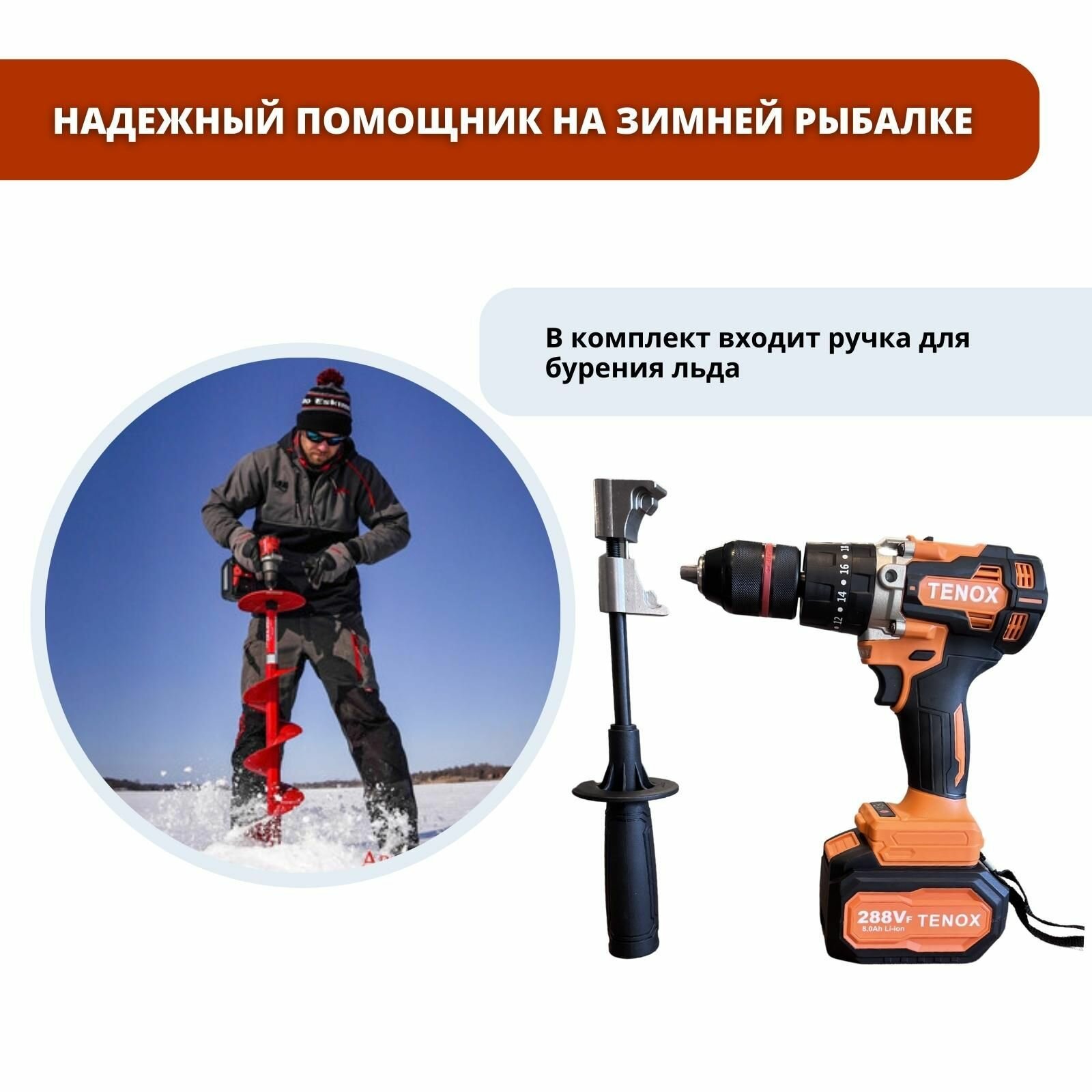 Отзывы на TENOX 288Vf Шуруповерт ударный бесщеточный для ледобура аккумуляторный электрический, дрель-шуруповерт в кейсе, 21 В, 105 Нм, 2 АКБ LI-ION, 8 Ач