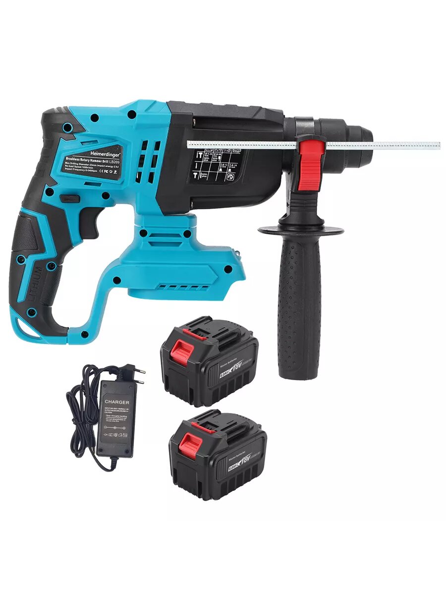 10 цен на Перфоратор Heimerdinger, 800 Вт, 2.0 Дж, 2 режима, патрон SDS+,18В, 2х6 А·ч Li-Ion