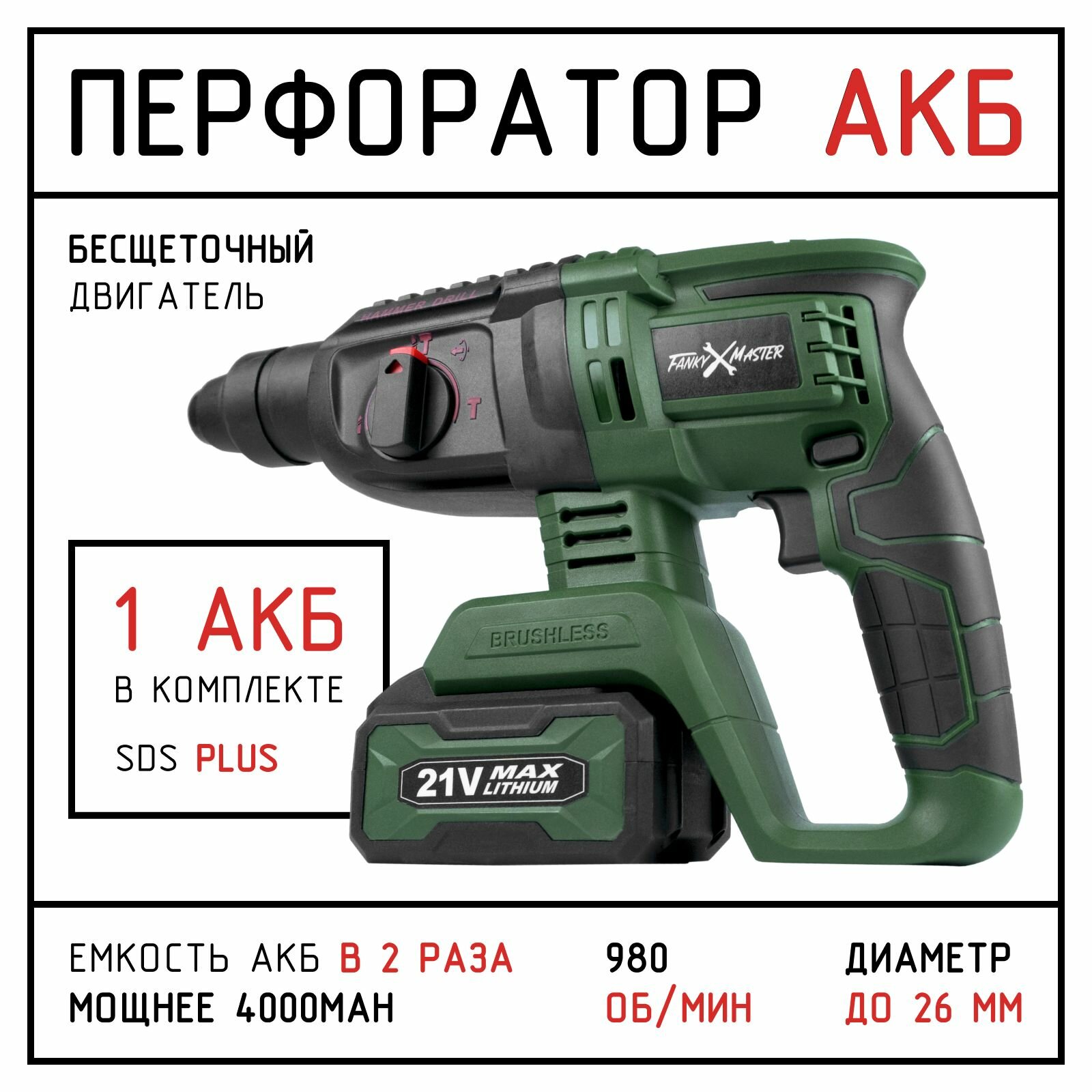 Перфоратор аккумуляторный ударная дрель SDS plus, бесщеточные перфараторы беспроводные с 1 АКБ 4000 mAh информация: