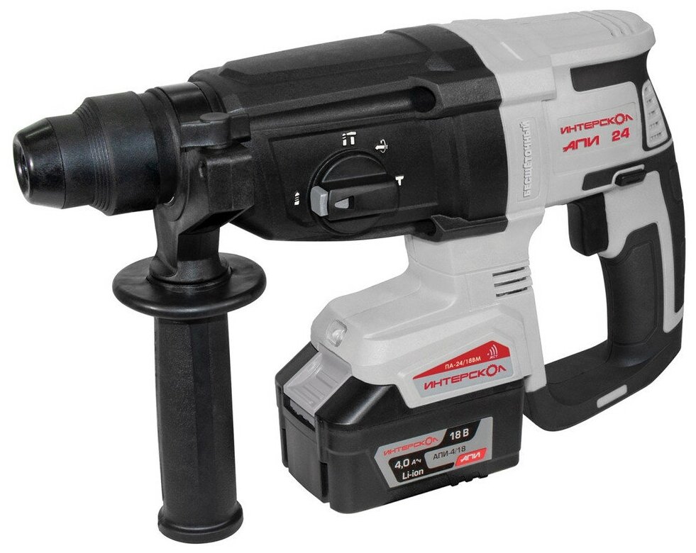 Бесщеточный профессиональный аккумуляторный трехрежимный перфоратор ИНТЕРСКОЛ ПА-24/18ВM с вентильным двигателем.