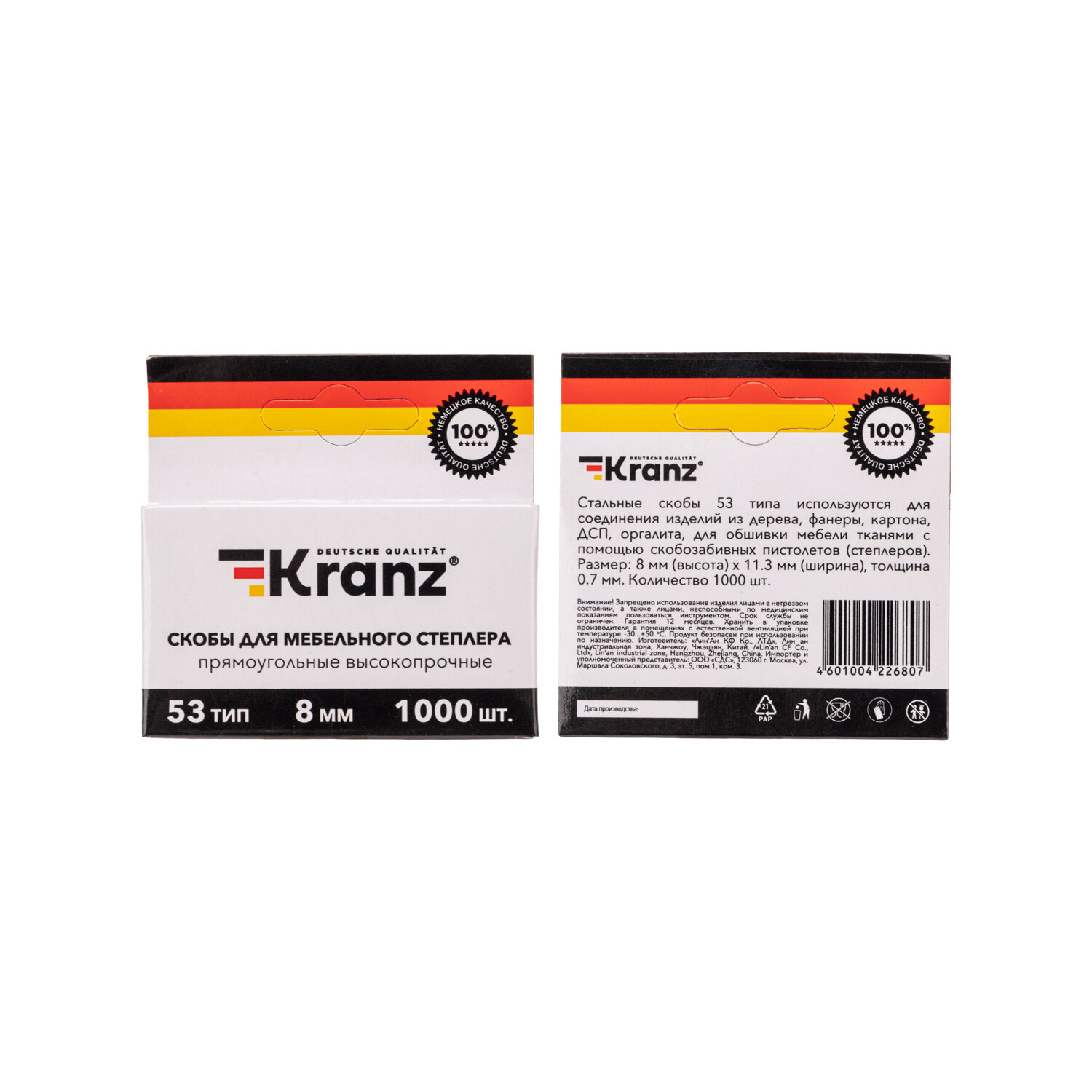 Скобы для мебельного степлера KRANZ 8 мм, тип 53, 1000 шт. информация:
