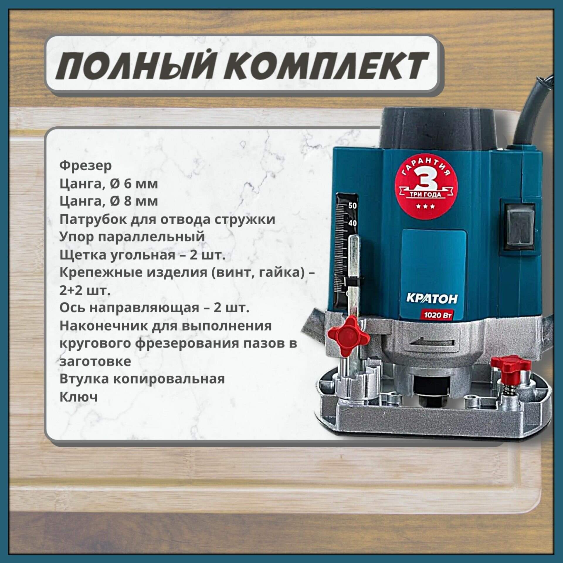 Отзывы на Фрезер по дереву Кратон ER100-8, 16000-30000 об/мин, 1020 Вт, цанги для фрезера 6 и 8 мм в комплекте