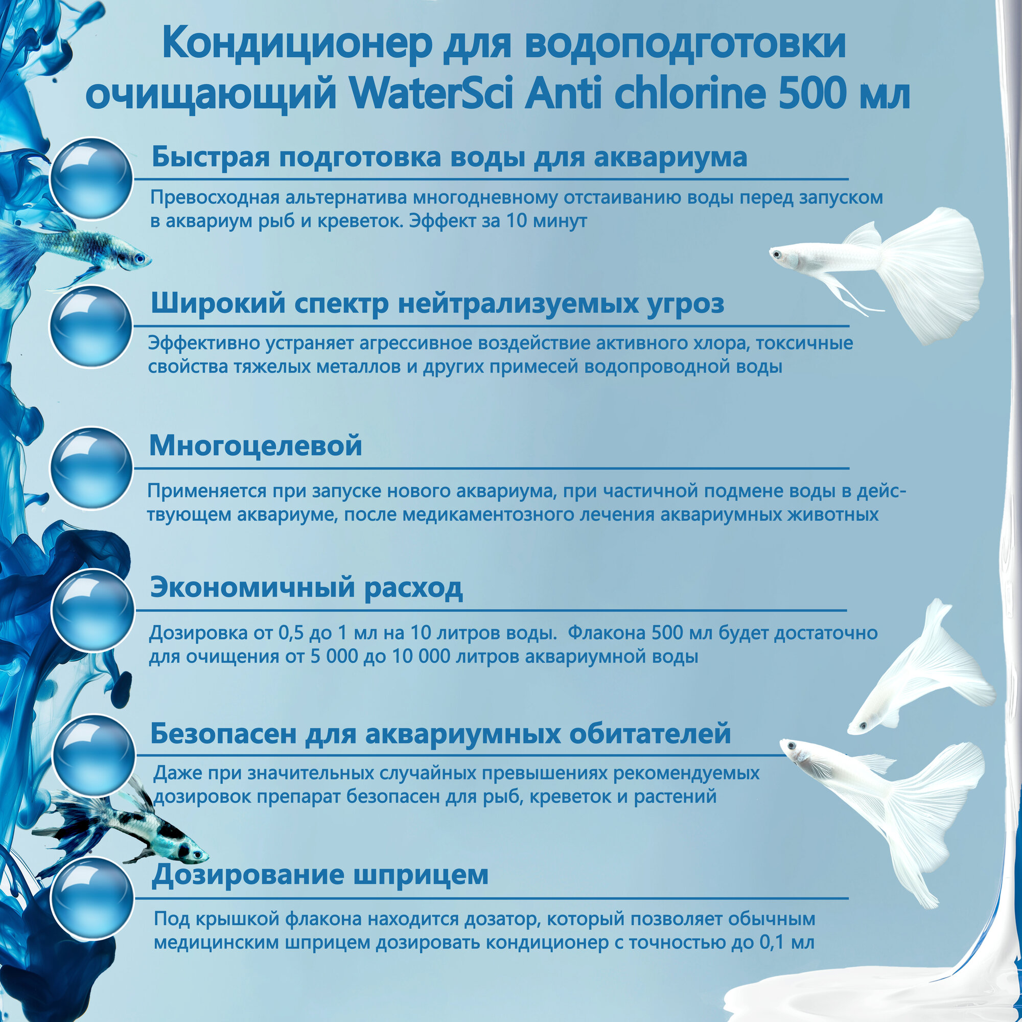 Кондиционер для аквариума очищающий Water Sci. Anti chlorine, 500 мл. информация: