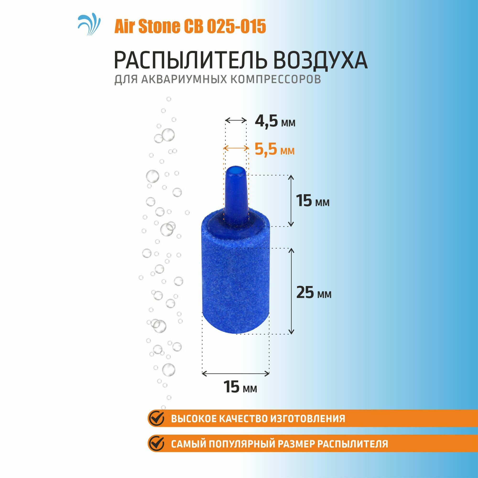 Krelong Air Stone CB 025-015, распылитель воздуха для компрессоров, цилиндр, синий, высота 25мм, диаметр 15мм, (3шт) информация: