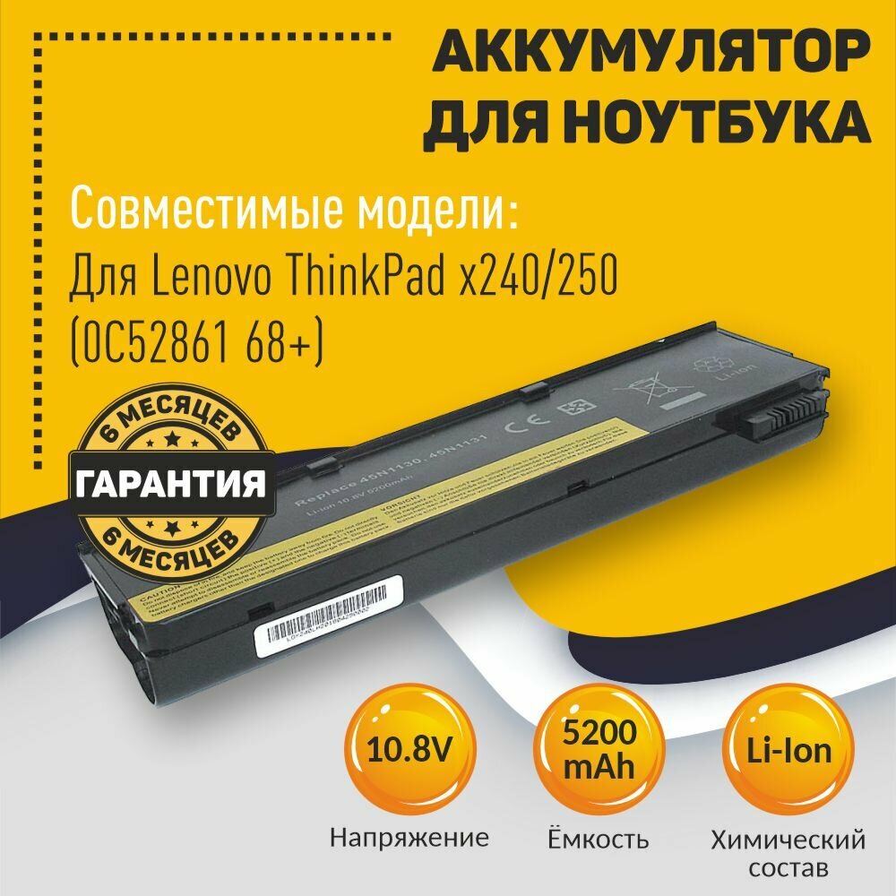 10 цен на Аккумуляторная батарея для ноутбука Lenovo ThinkPad x240/250 (0C52861 68+) 5200mAh OEM черная