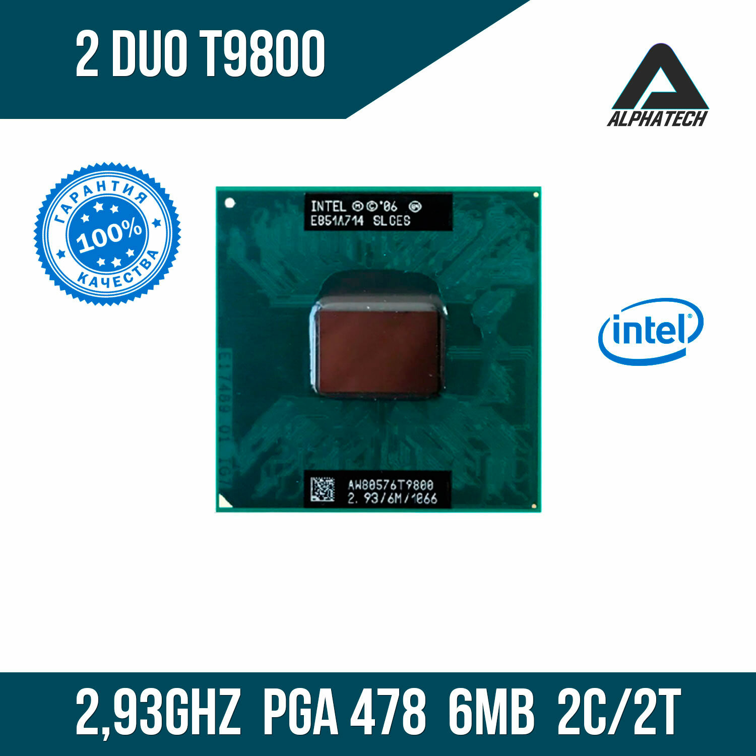Процессор для ноутбука Intel Core 2 Duo T9800 (2,93 ГГц, PGA 478, 6 Мб, 2 ядра) информация: