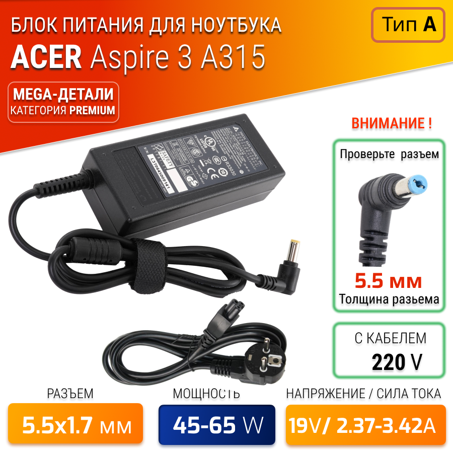Зарядка для ноутбука Acer Aspire 3 A315-21 (версия с разъемом 5.5x1.7mm) информация: