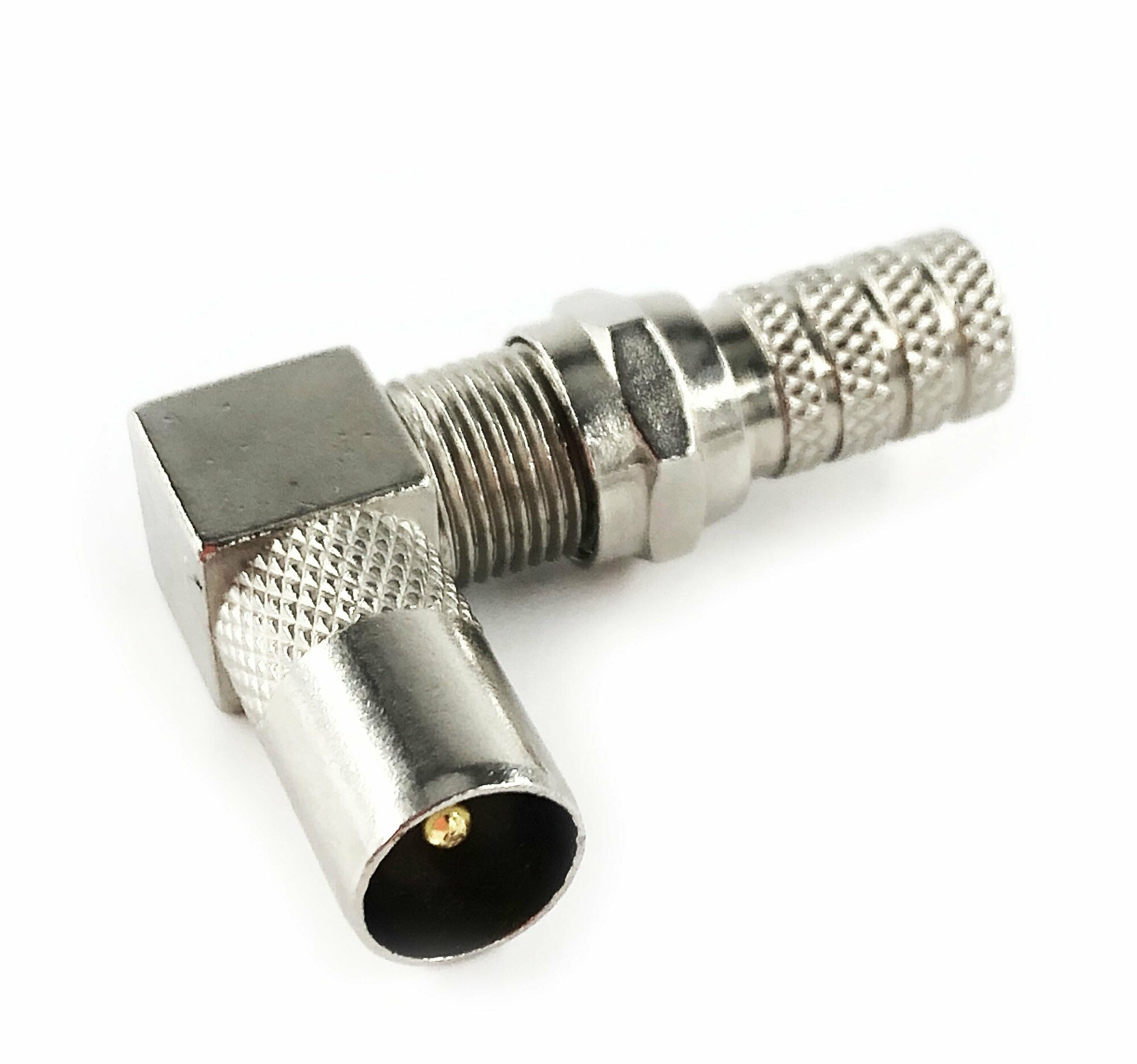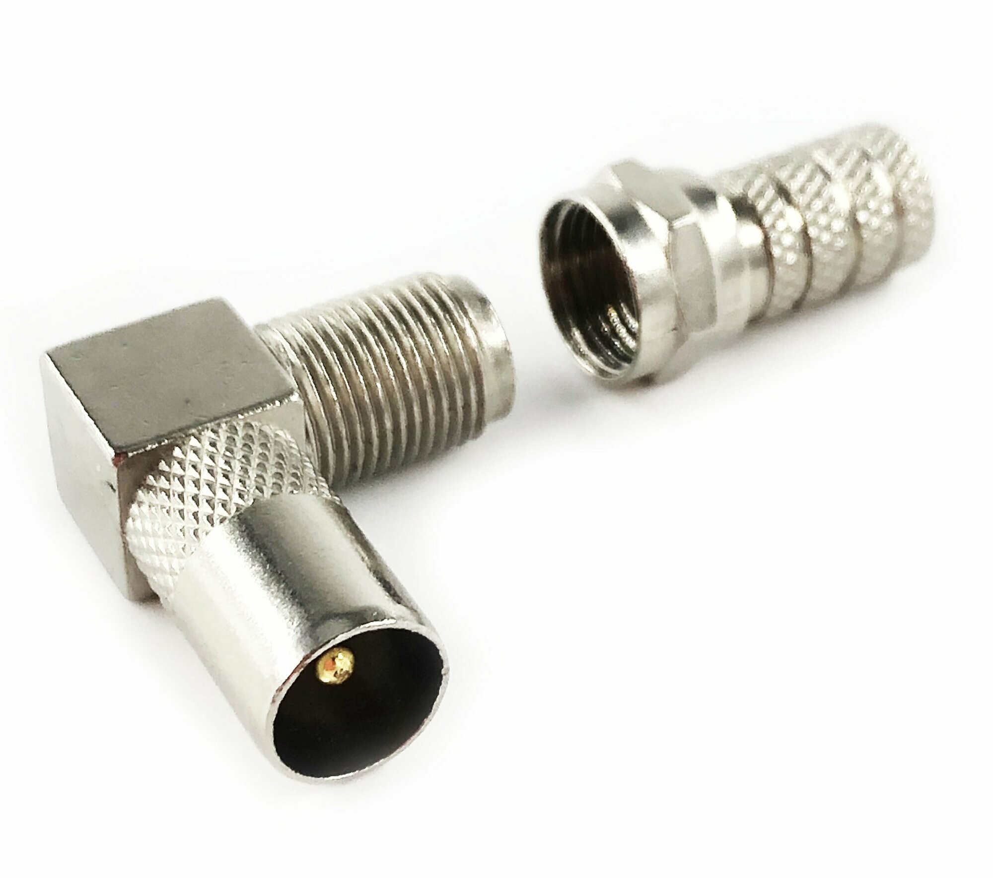 Переходник ТВ штекер - F гнездо угловой металл ( в комплекте F разъем.) информация: