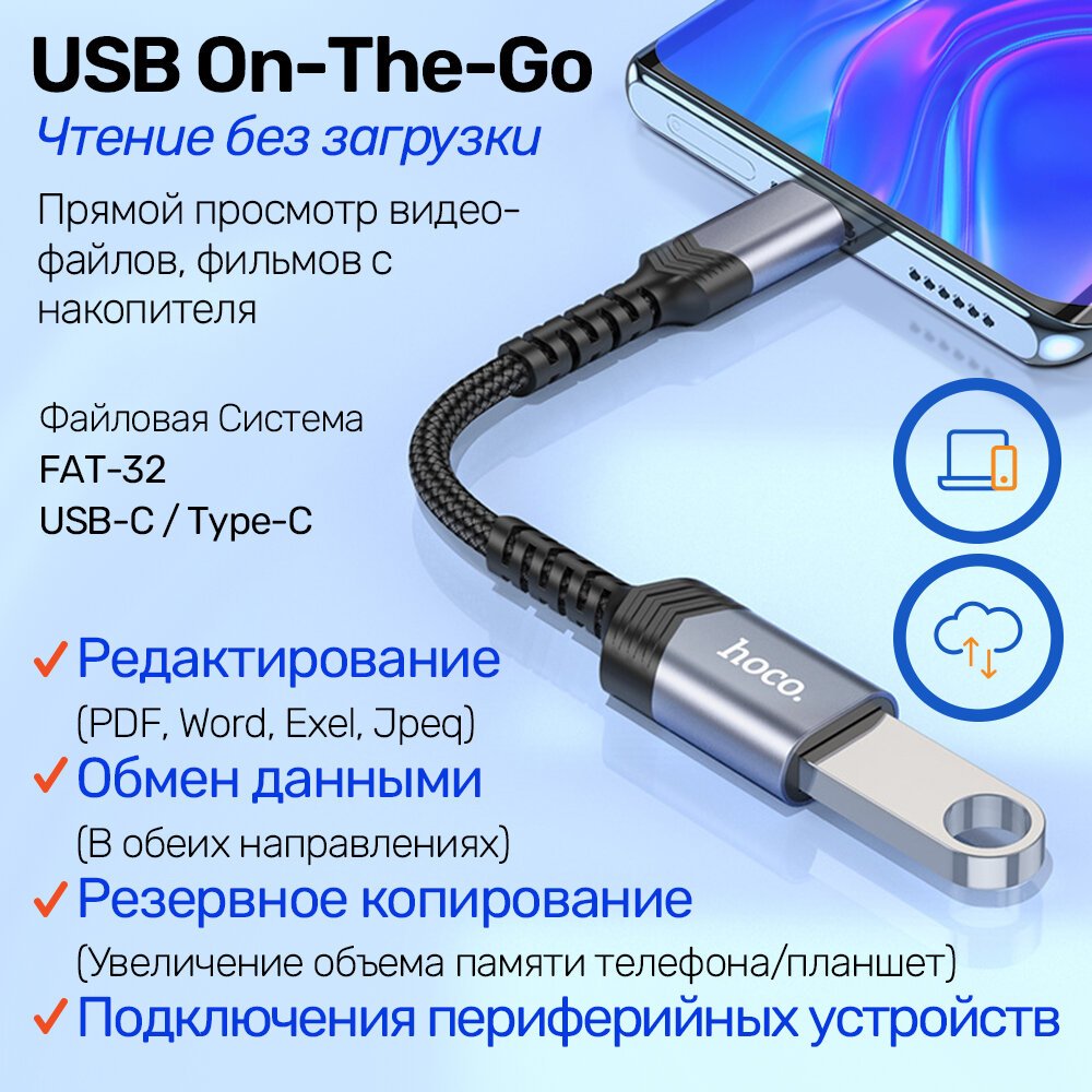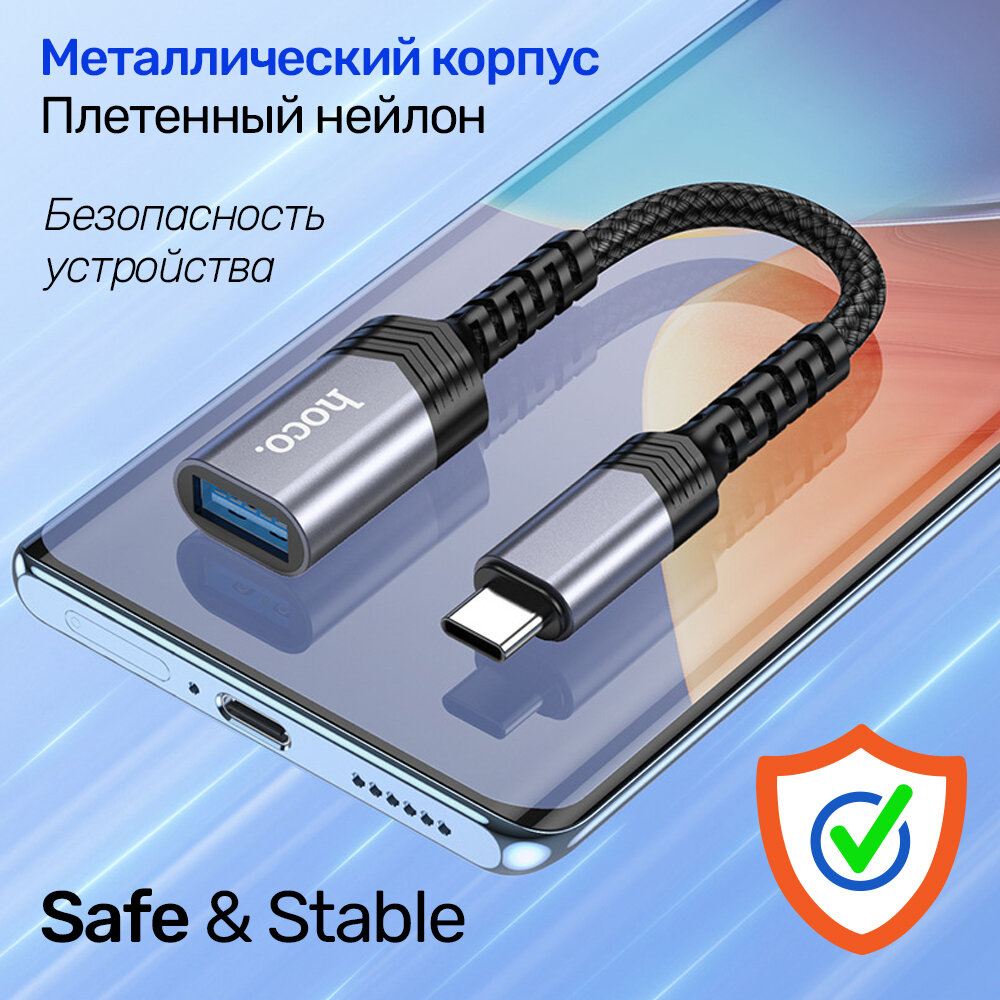 10 цен на OTG Адаптер, переходник с USB-A 3.0 на Type-C (USB-C), 16,5 см, 5Гбит/с + Зарядка 5В/4А, hoco UA24