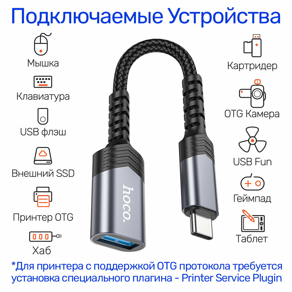 Отзывы на OTG Адаптер, переходник с USB-A 3.0 на Type-C (USB-C), 16,5 см, 5Гбит/с + Зарядка 5В/4А, hoco UA24