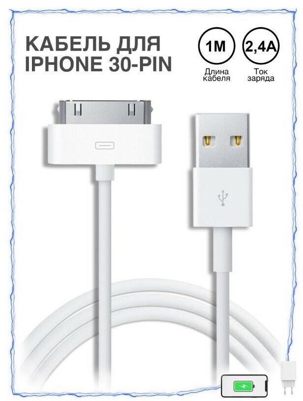 Зарядка для айфона / Зарядка / Кабель для айфона / Кабель для Iphone 4/4S, iPad 1-3 с Разъемом 30 Pin / USB провод для Айфона 4 / Провод для айфона информация: