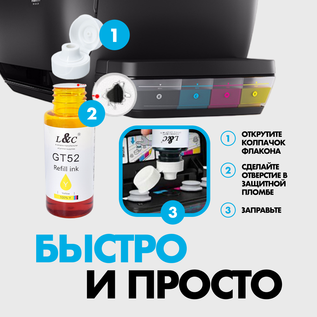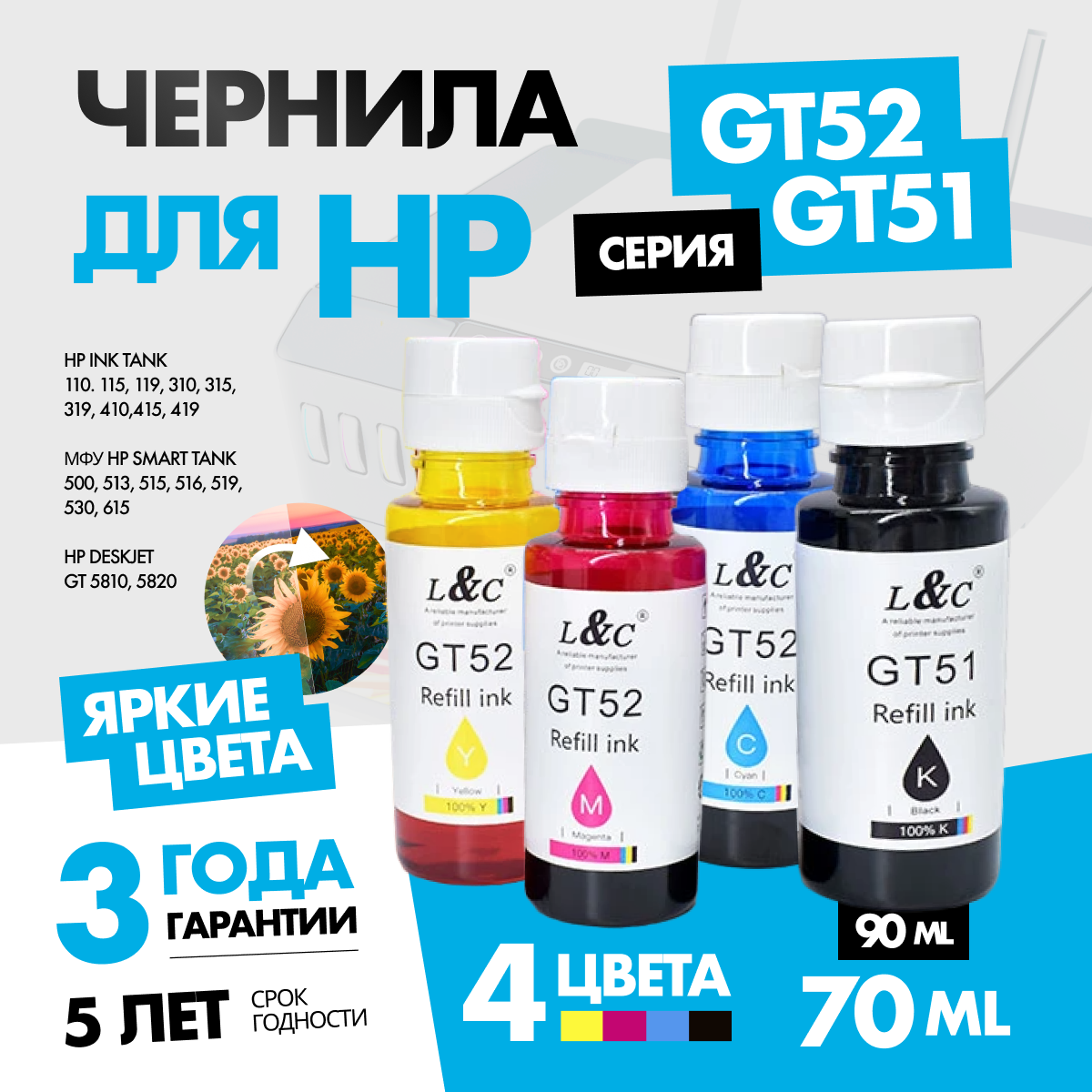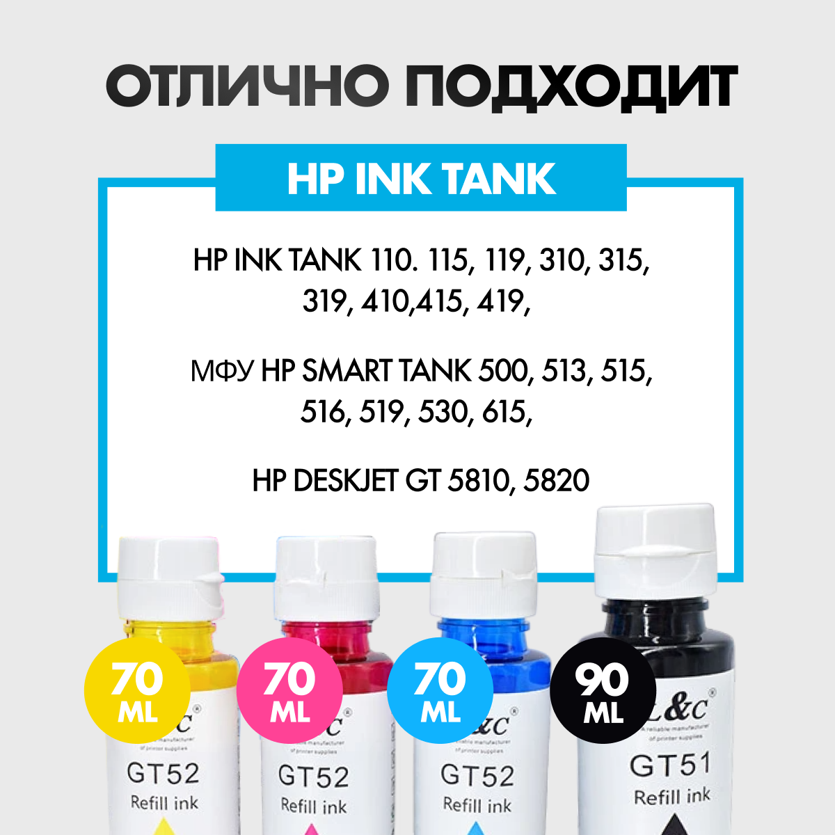 Чернила краcка для принтеров HP DeskJet 5810, 5820, Ink Tank 115, 315, 319, 410, 415, 419, Smart Tank 450, 455, 500, 515, 530, 615, 670 информация: