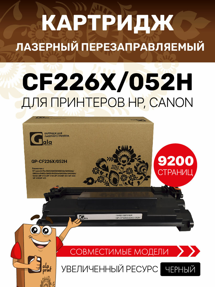 Картридж Galaprint CF226X/052H (HP 26X) для HP LaserJet Pro M402/M426/Canon LBP-212/LBP-214/LBP-215/MF-421 9200 копий GalaPrint лазерный, совместимый информация: