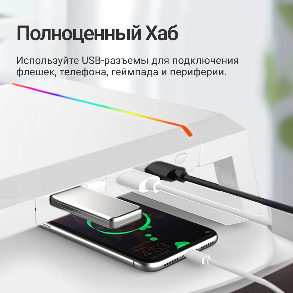 10 цен на Подставка под монитор T1 с USB и подставкой для смартфона белая