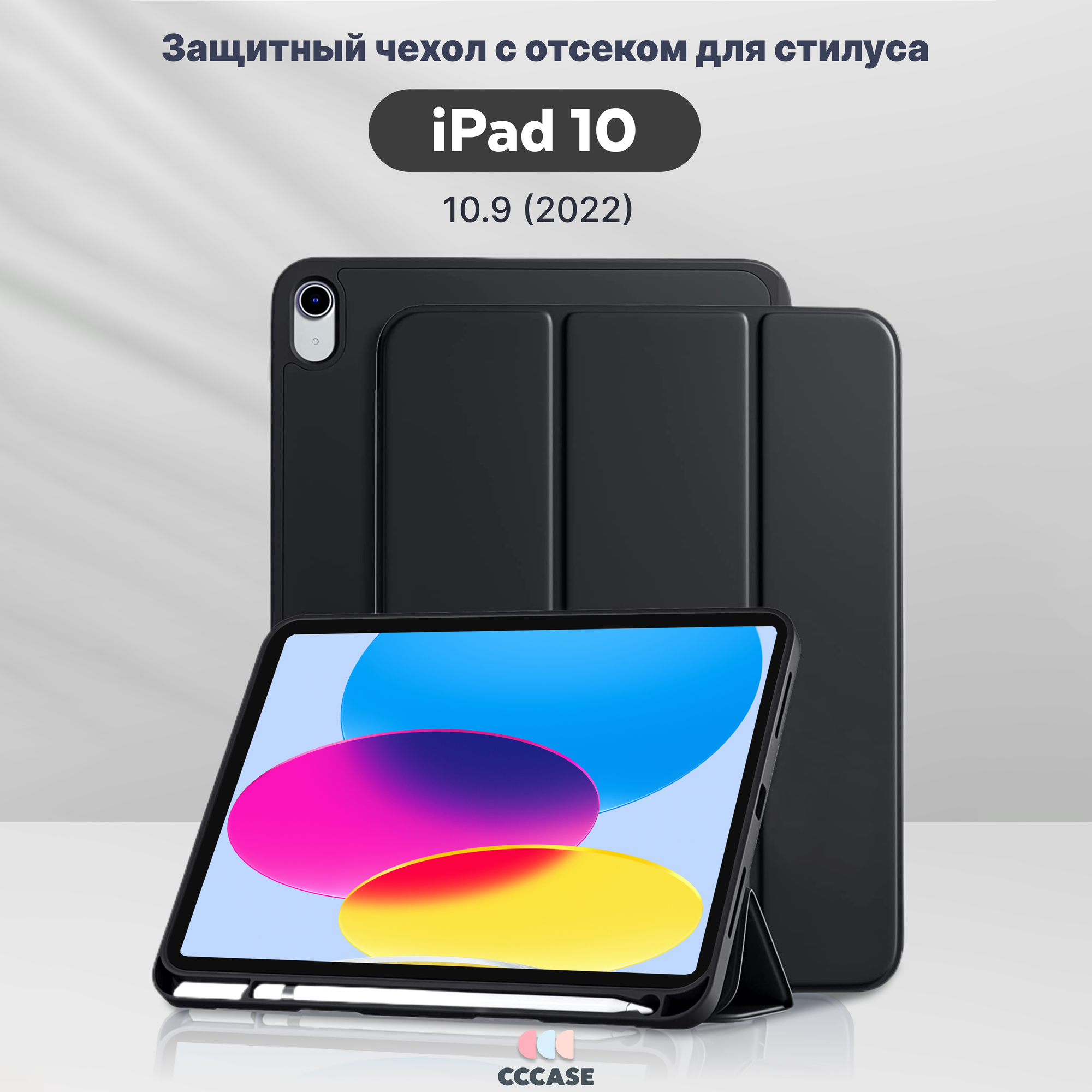 Отзывы на Чехол книжка CCCASE для Apple iPad 10 10.9 (2022) - A2696, A2757, A2777, с отделением для стилуса, цвет: черный