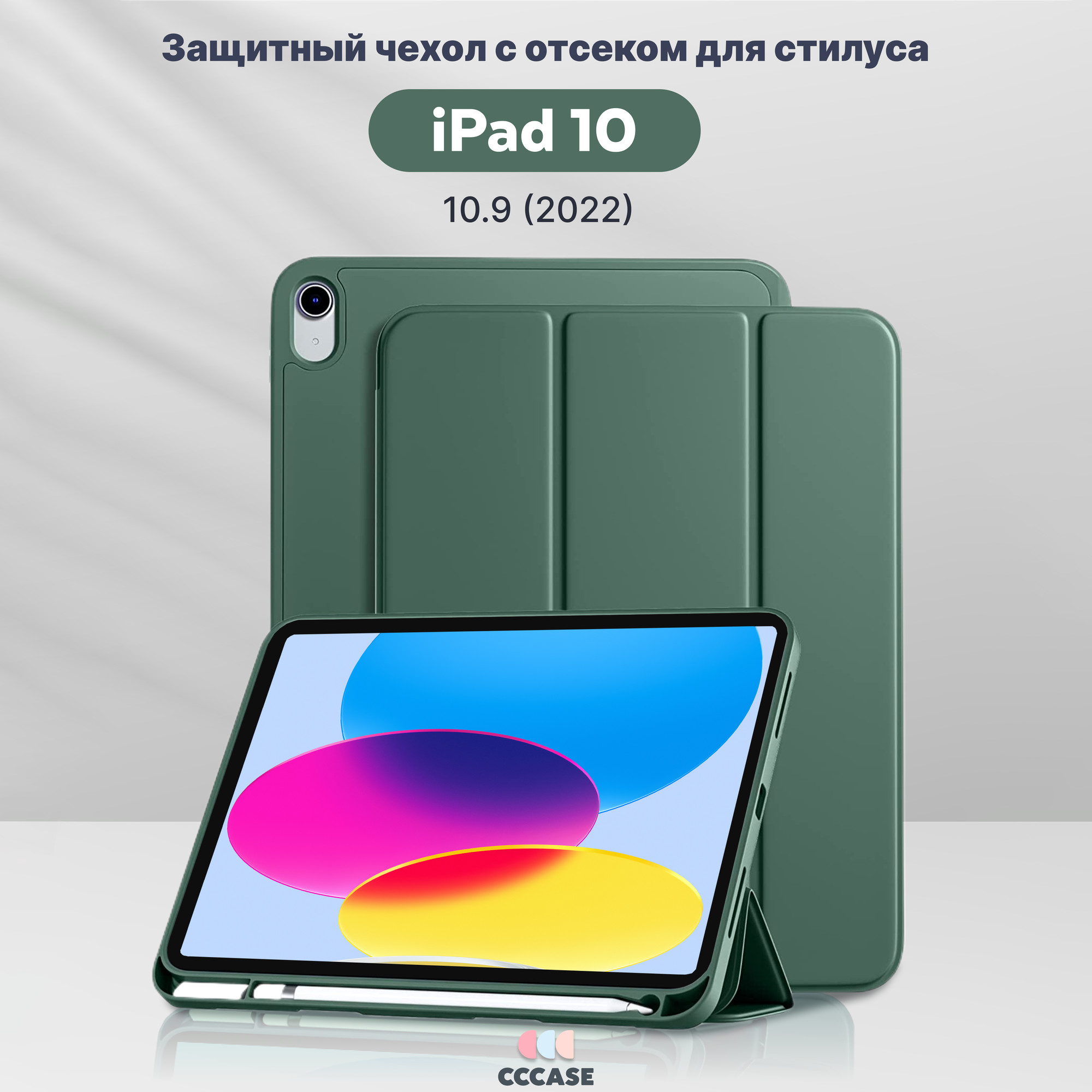 Отзывы на Чехол книжка CCCASE для Apple iPad 10 10.9 (2022) - A2696, A2757, A2777, с отделением для стилуса, цвет: зеленый