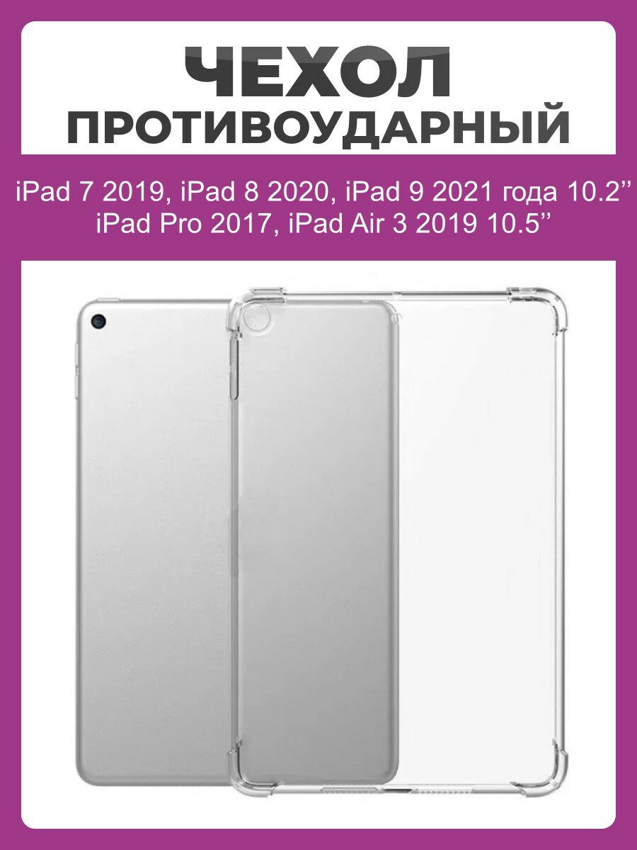 Чехол накладка противоударный для iPad 10.2, iPad 10.5 (iPad 7,8,9 (10.2), Air 3 (10.5) 2019, Pro (10.5) 2017) прозрачный информация: